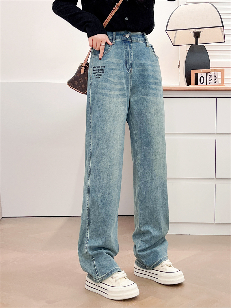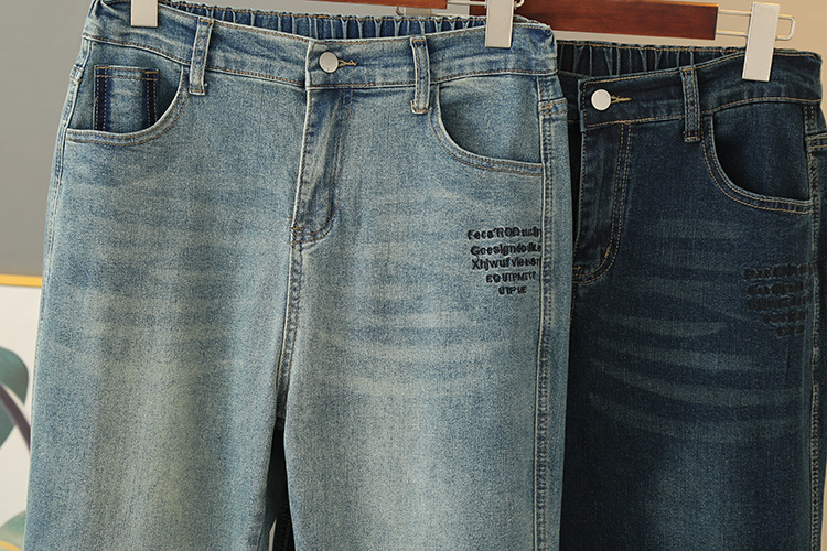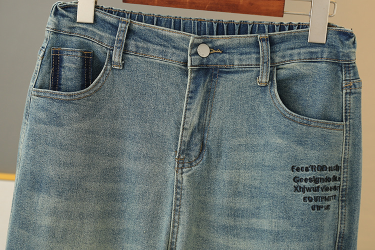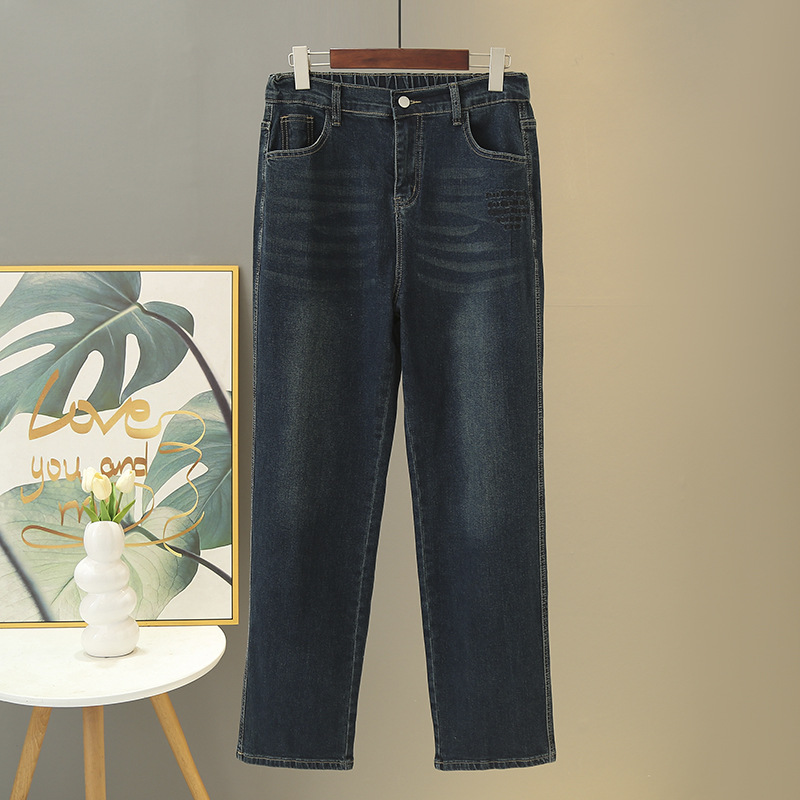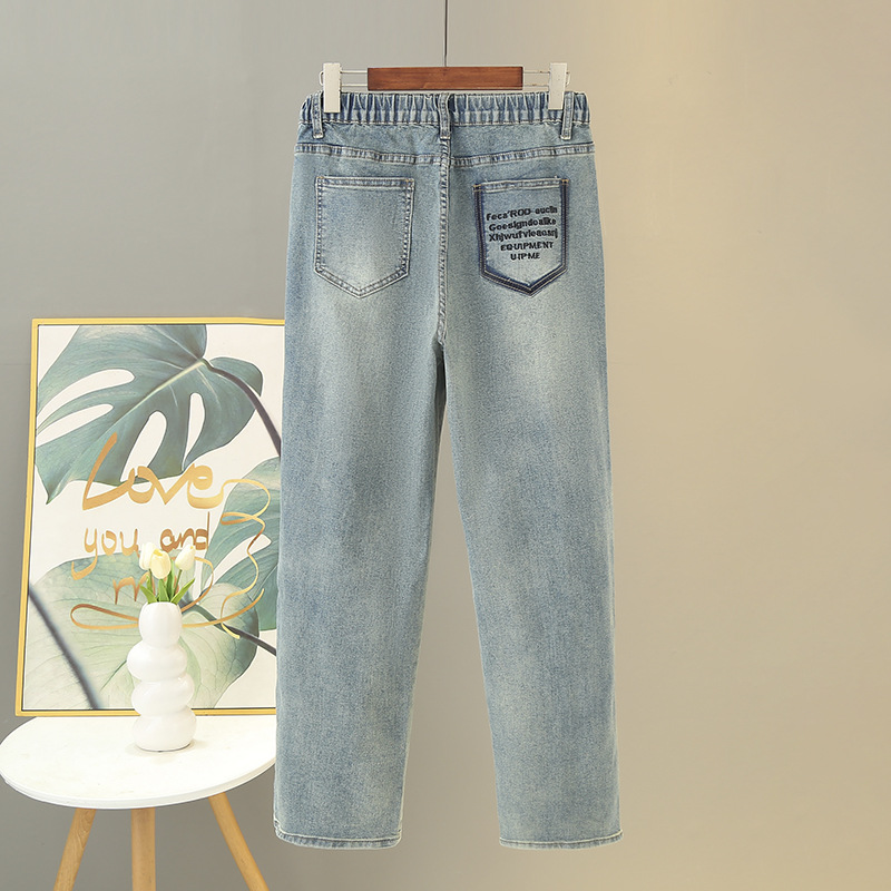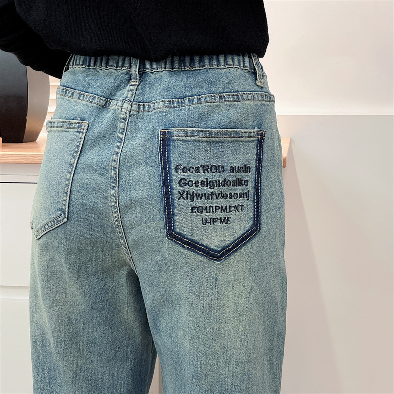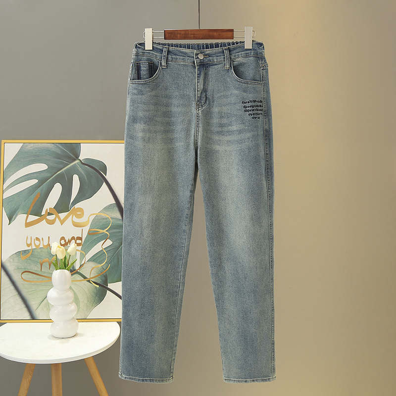 2024秋の狭い版のジーパンの大きいサイズの女性のズボンの高腰の気質のアルファベットの刺繍のズボンの太っている妹はやせている弾力性の2471を現します。