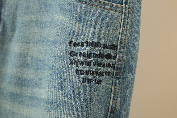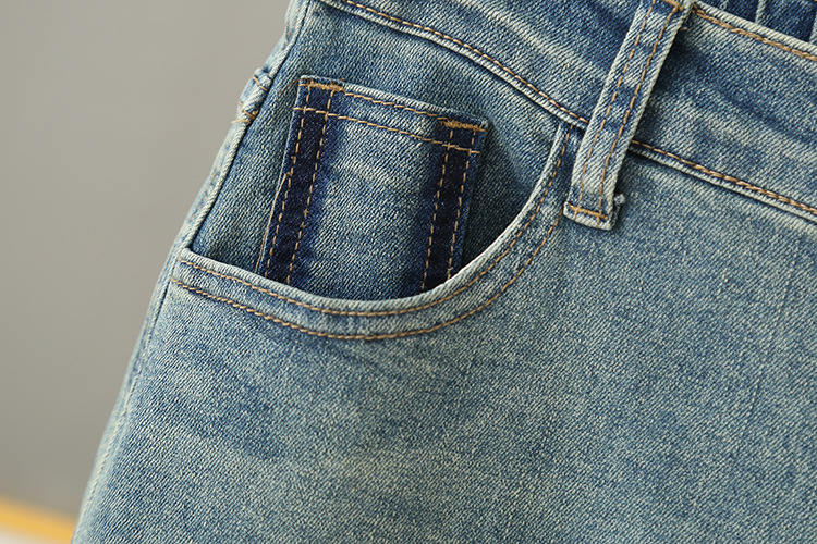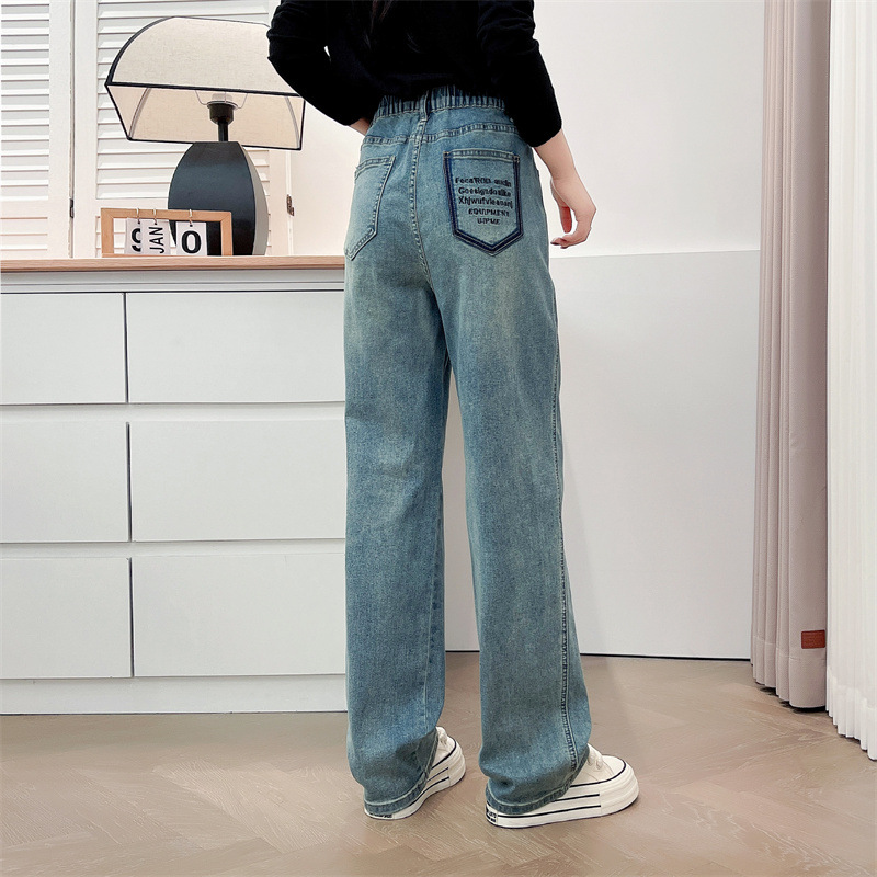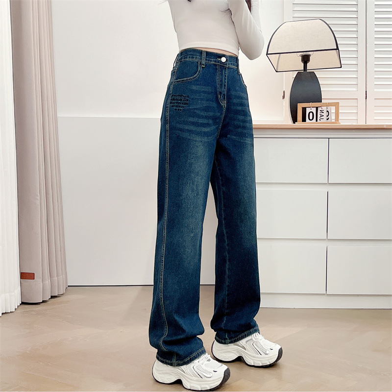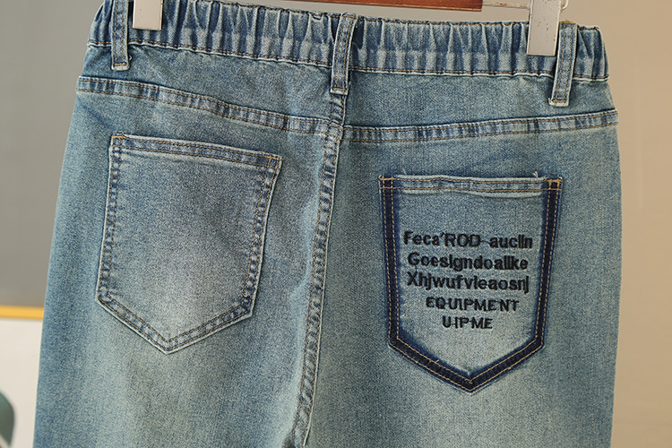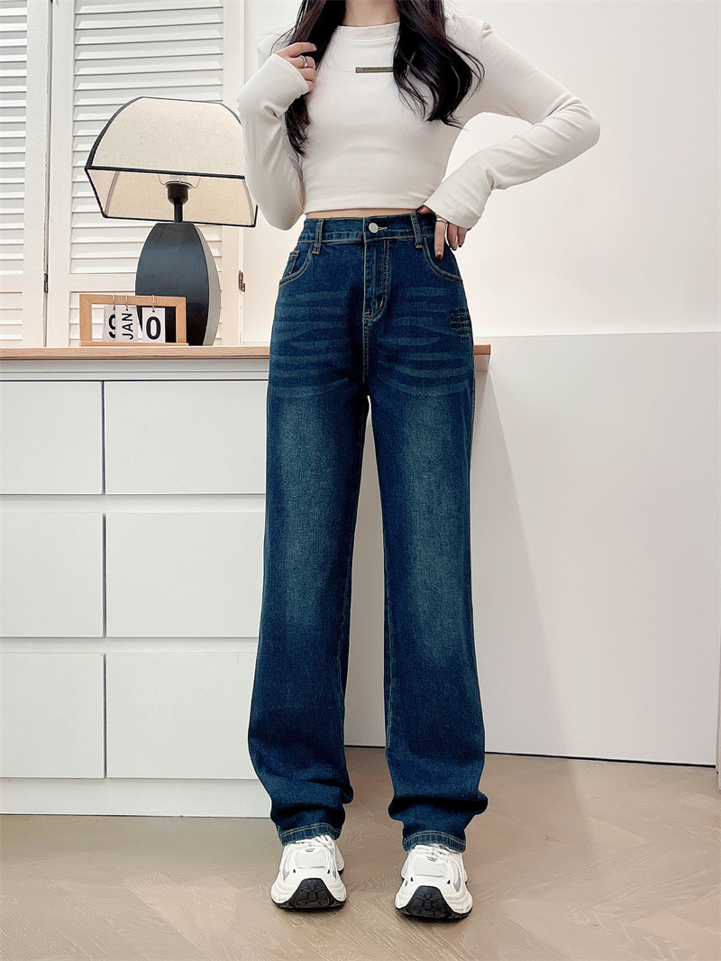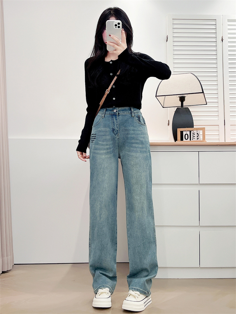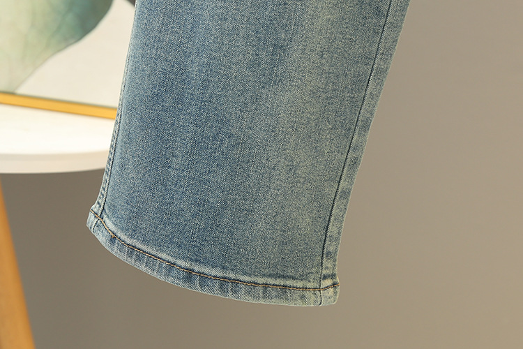 2024秋の狭い版のジーパンの大きいサイズの女性のズボンの高腰の気質のアルファベットの刺繍のズボンの太っている妹はやせている弾力性の2471を現します。