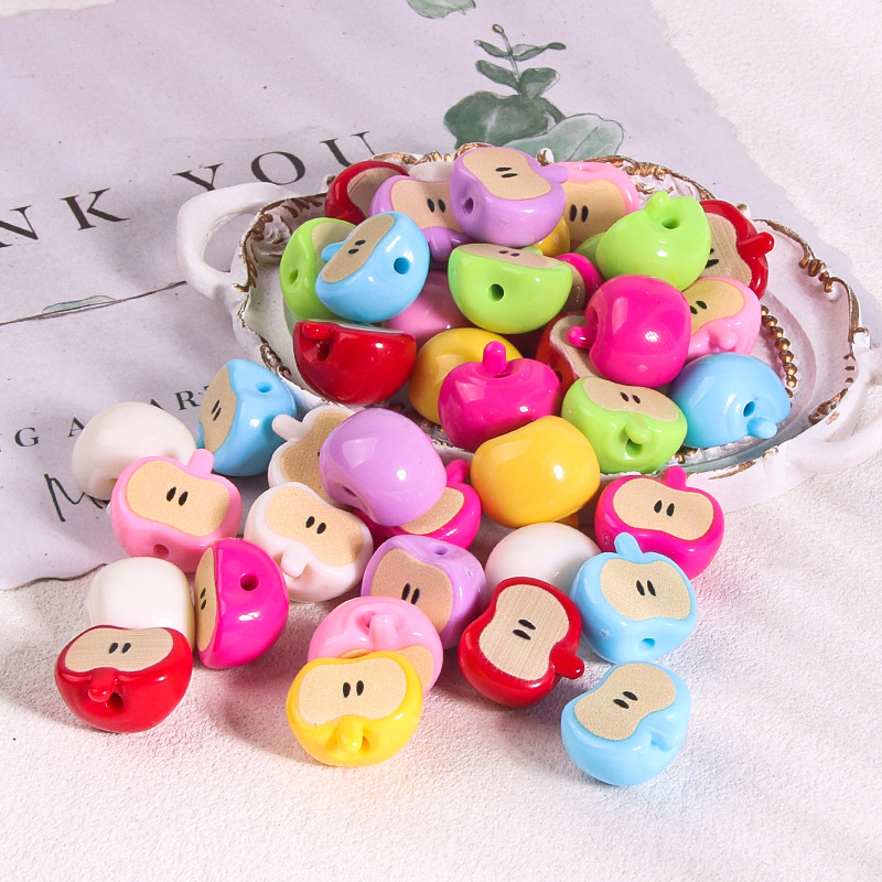 アクリルカラー漫画夜光リンゴ縦穴ビーズ蛍光造形ビーズdiy児童知育手串アクセサリー
