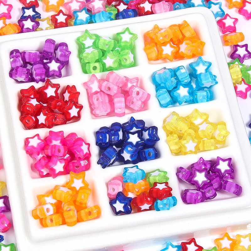 アクリル珠中珠カラー五角星単色直孔ビーズdiy児童手作り携帯電話チェーンストラップ材料