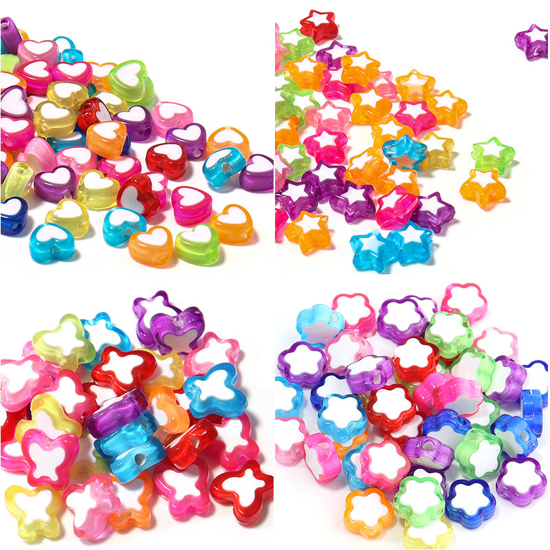 アクリル透明カラービーズ中珠五角星愛蝶直孔diyビーズアクセサリー材料