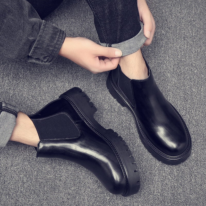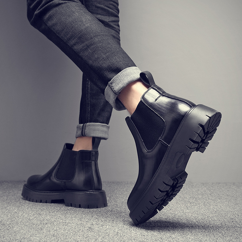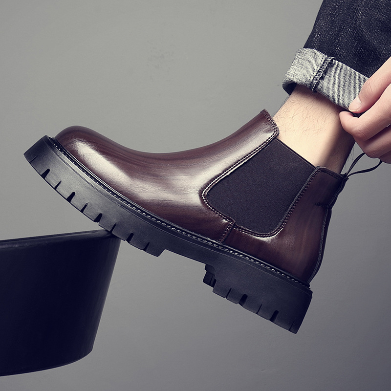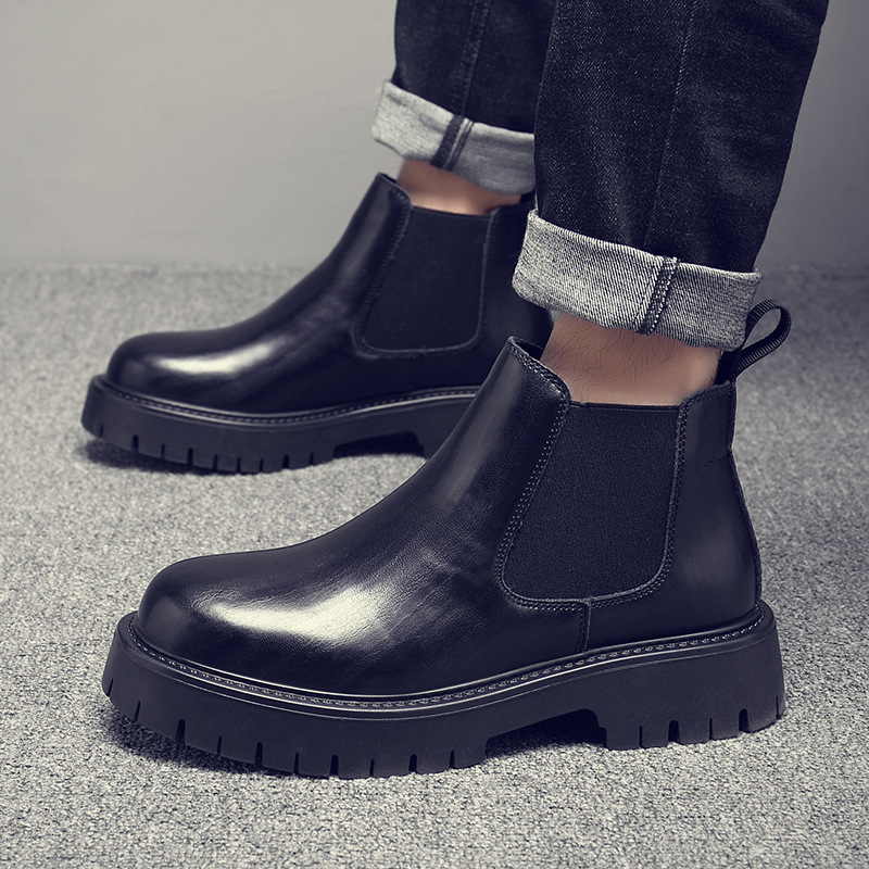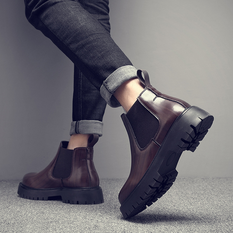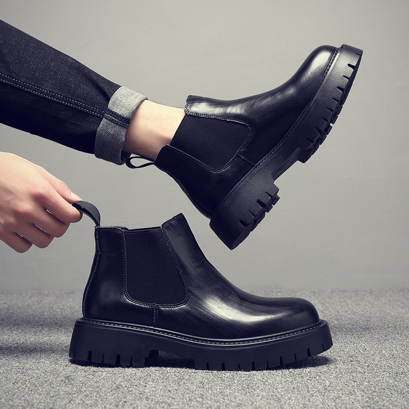 2025秋冬英伦复古切尔西靴男厚底休闲短皮靴一脚蹬高帮马丁靴