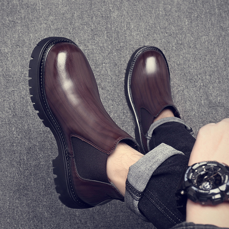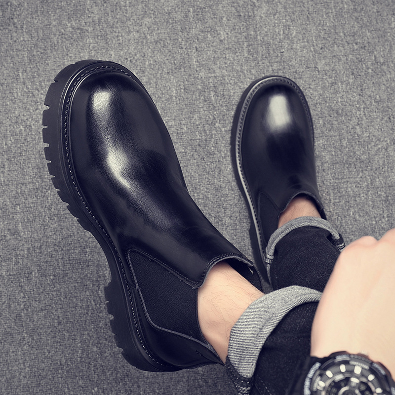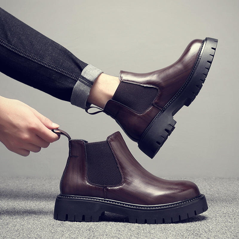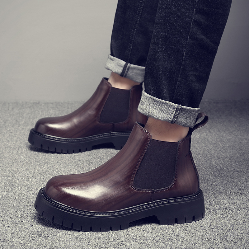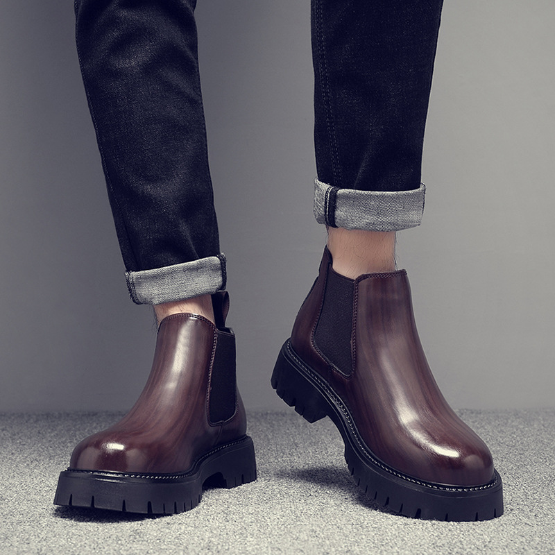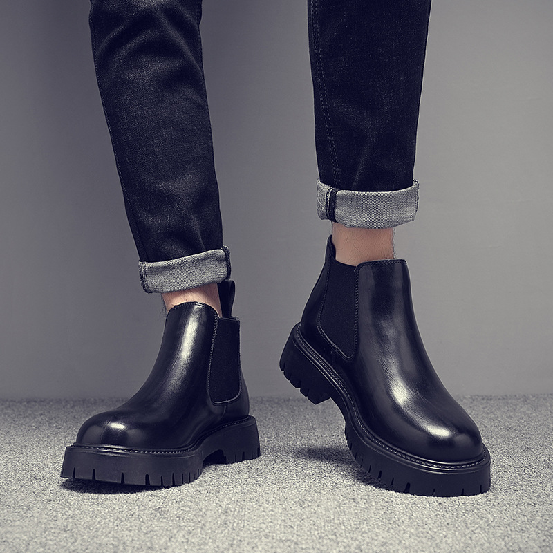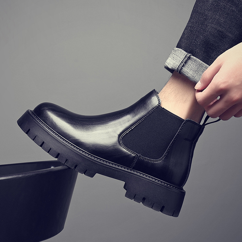 2025秋冬英伦复古切尔西靴男厚底休闲短皮靴一脚蹬高帮马丁靴