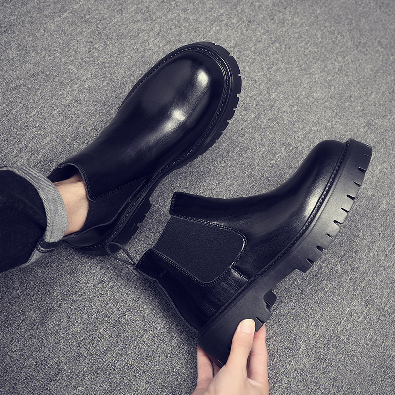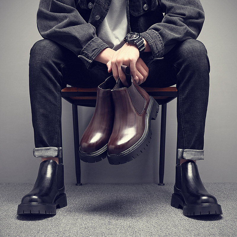 マーティンブーツの男性の厚い底の秋の新型の中で柔らかい皮のショートブーツのファッションの潮流の機関車の中で高くなるチェルシーの靴
