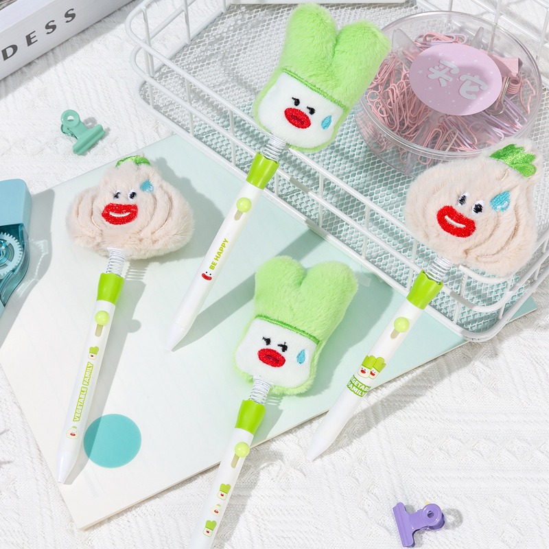 野菜の家族のぬいぐるみの中性ペンのアイデアのかわいい揺れるペンの毛の筆の0.5mmの黒色の水筆の卸売り