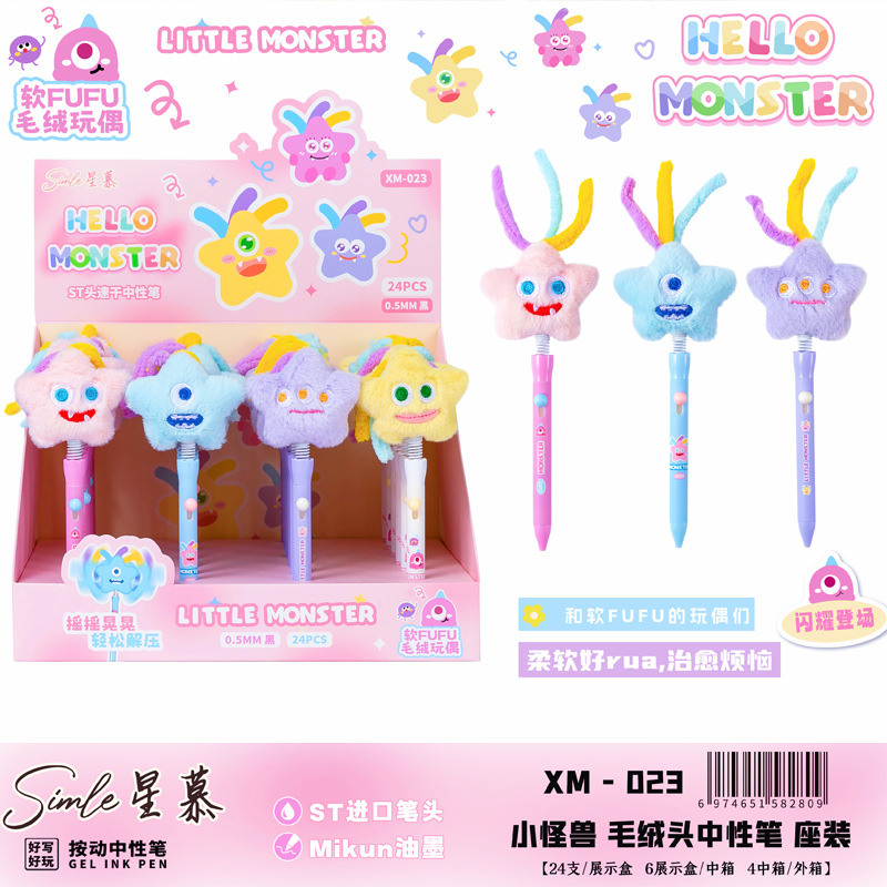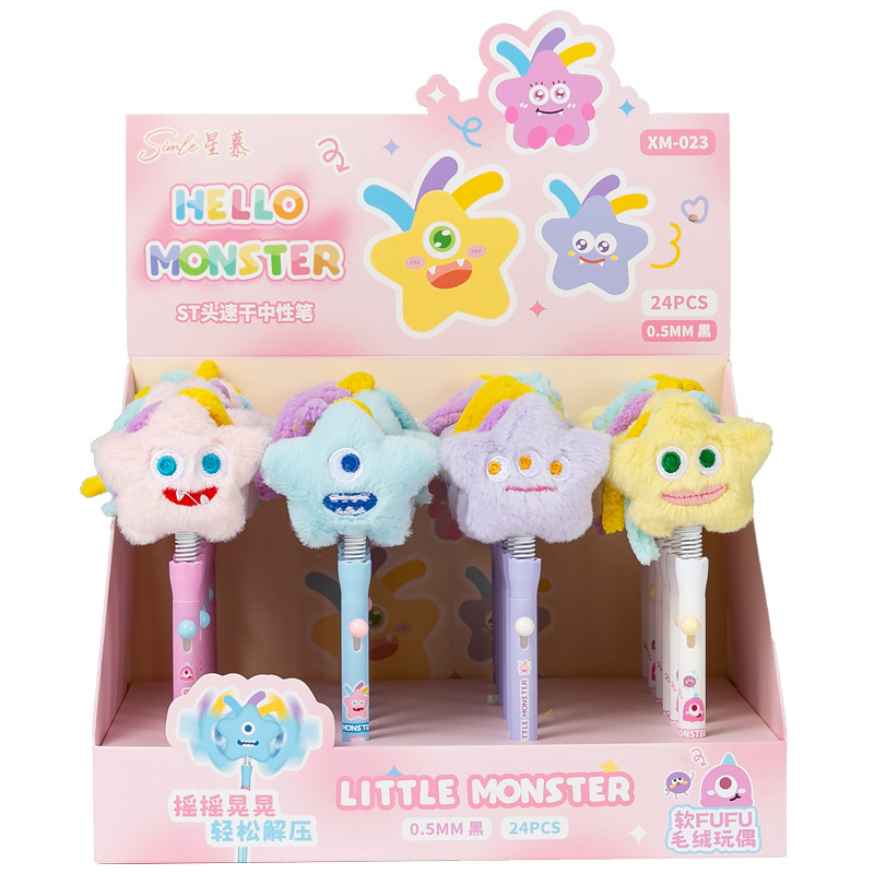 星の怪獣のぬいぐるみの中性の筆のアイデアのかわいい揺れる筆の毛の筆の0.5mmの黒色の水筆の卸売り