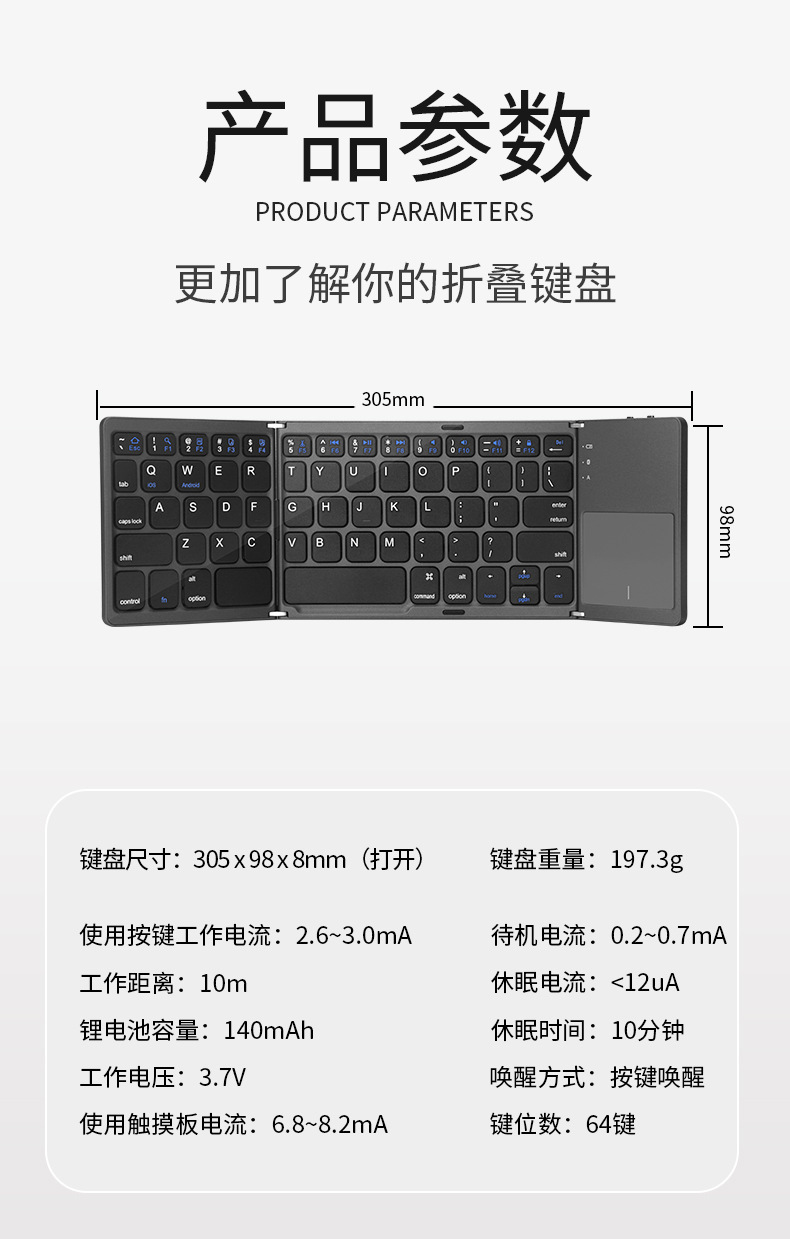 键盘尺寸:打开304.3*98*9.8mm
