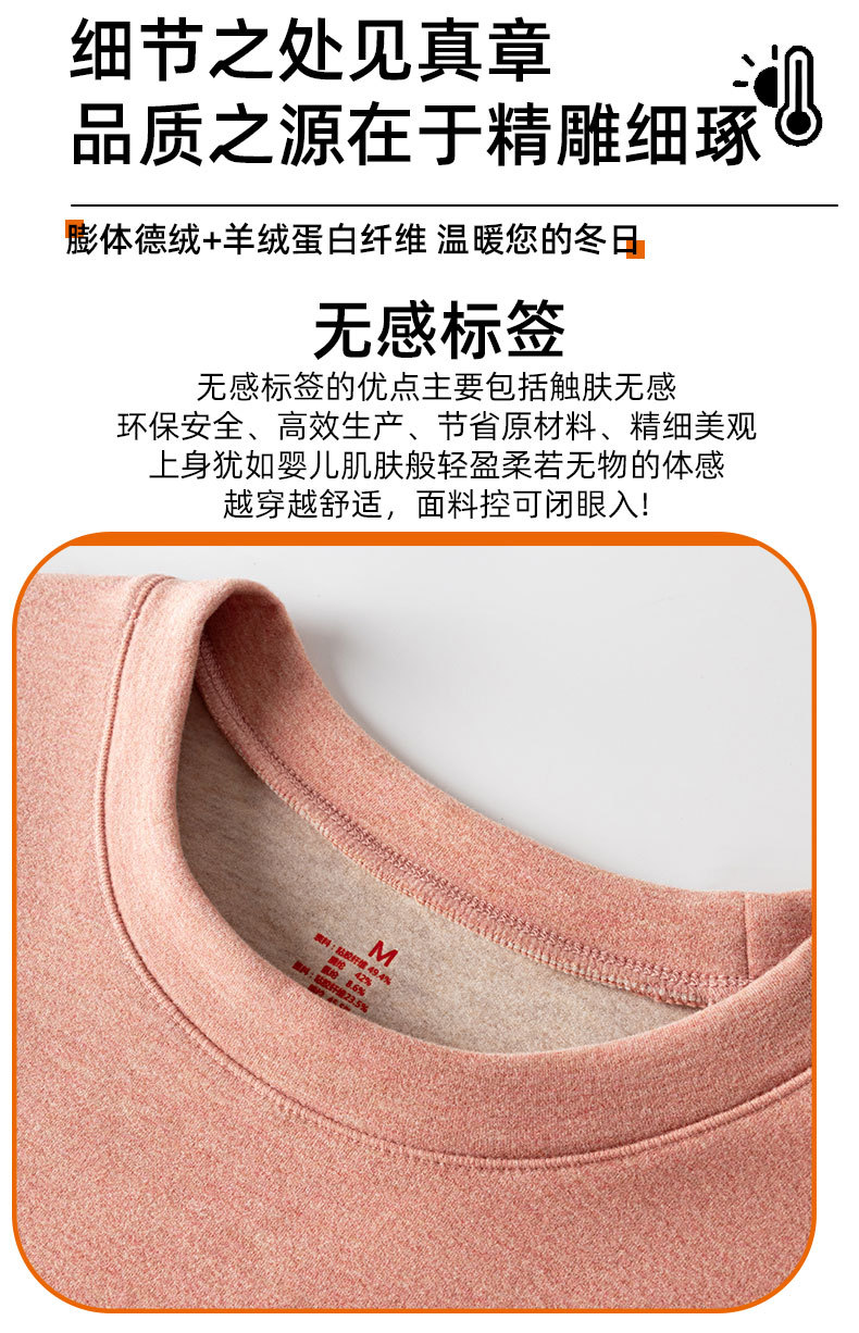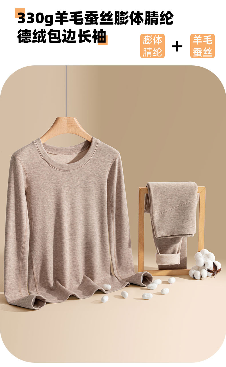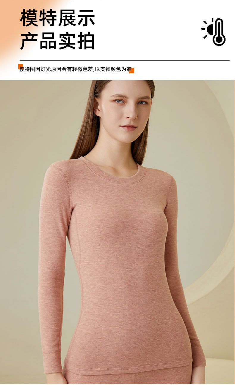 ウールシルク混紡デロン素材のハーフタートルネック男女兼用保温衣セット、裏起毛・厚手の保温下着・秋服