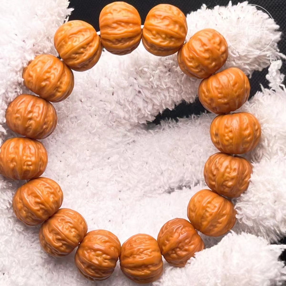 精品龙纹桃核金鱼爆肚正圆小金豆深纹54颗长串男女配饰108颗脖挂
