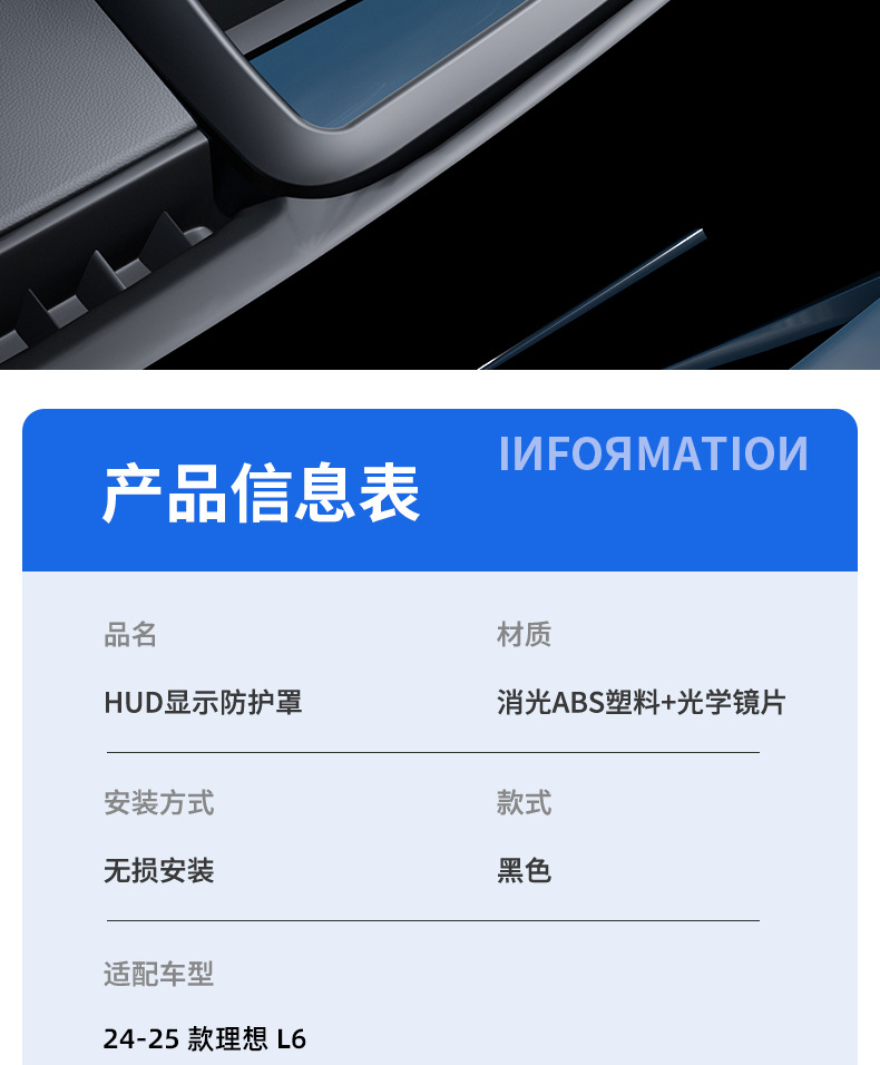适用于理想i6/i8L6L7L8L9抬头显示保护框仪表台HUD防护罩配件装饰