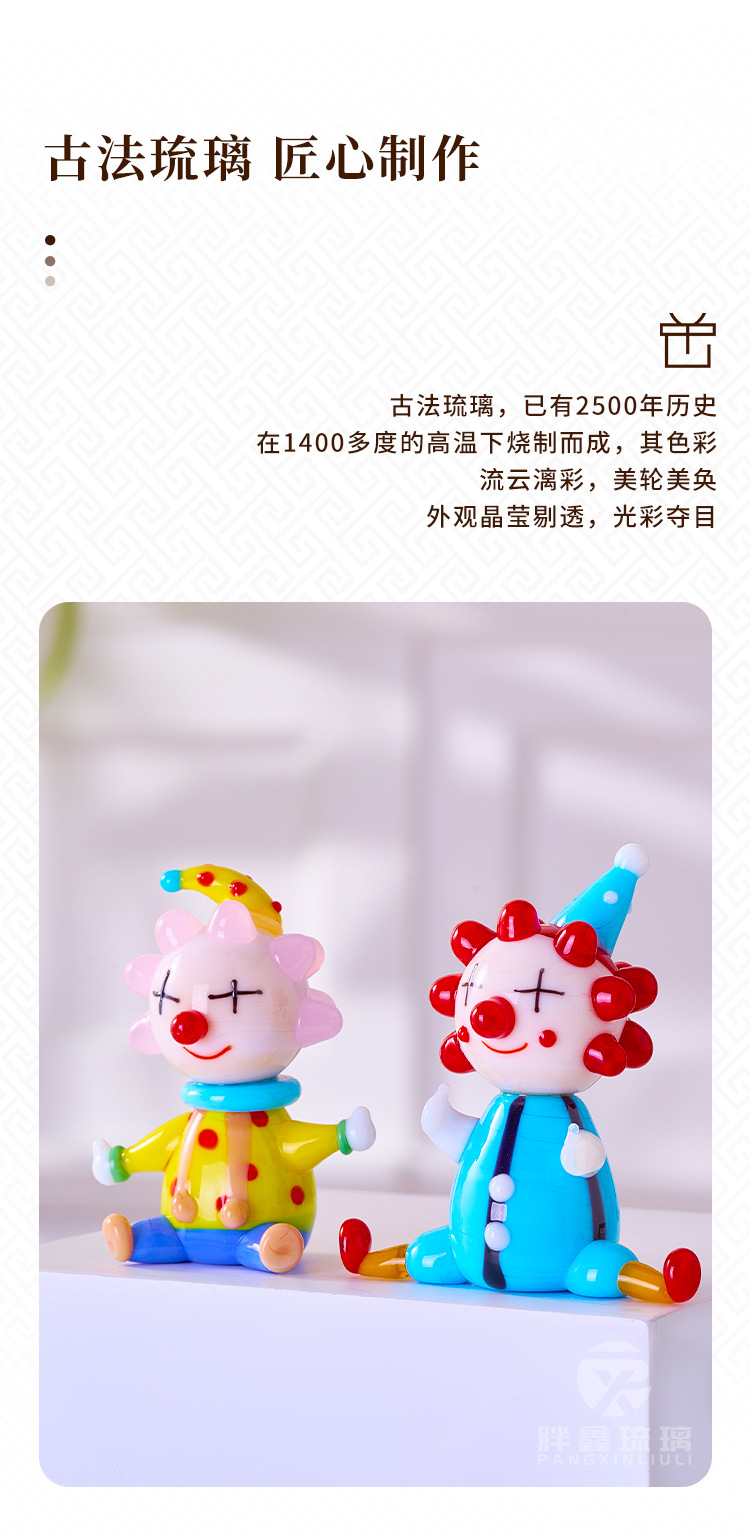淄博瑠璃置物手作り非遺留道化師小かわいいミニデスクトップ装飾プレゼントサーカス