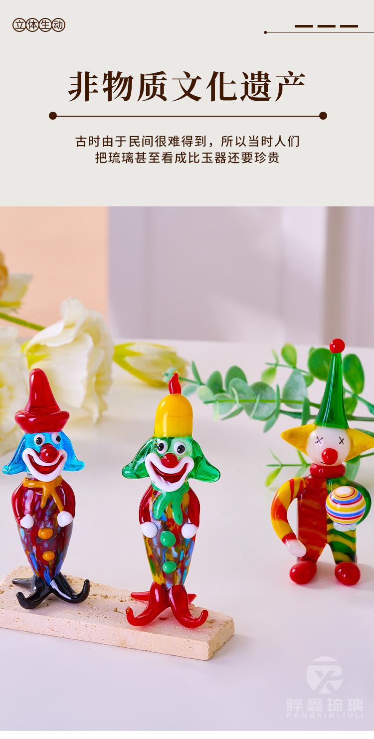 彩色琉璃小丑迷你摆件 趣味搞怪桌面装饰 手工玻璃艺术创意小礼物