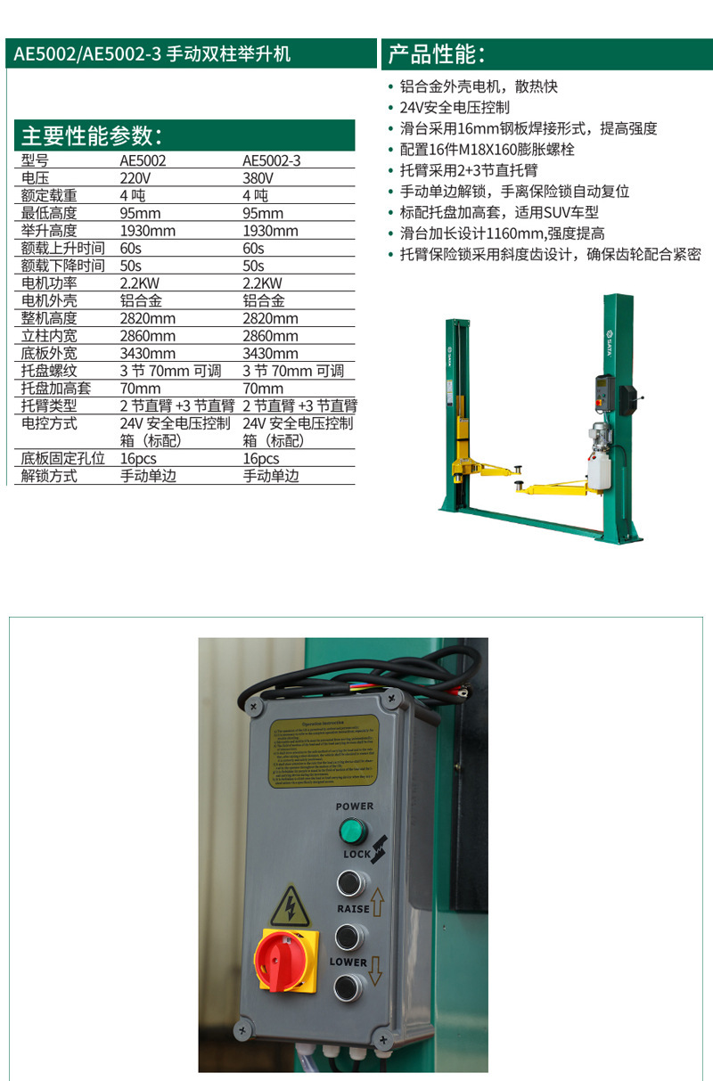 世達AE5002双柱自動車離着陸機四輪リフト4トン自動車リフト手動AE5002-3