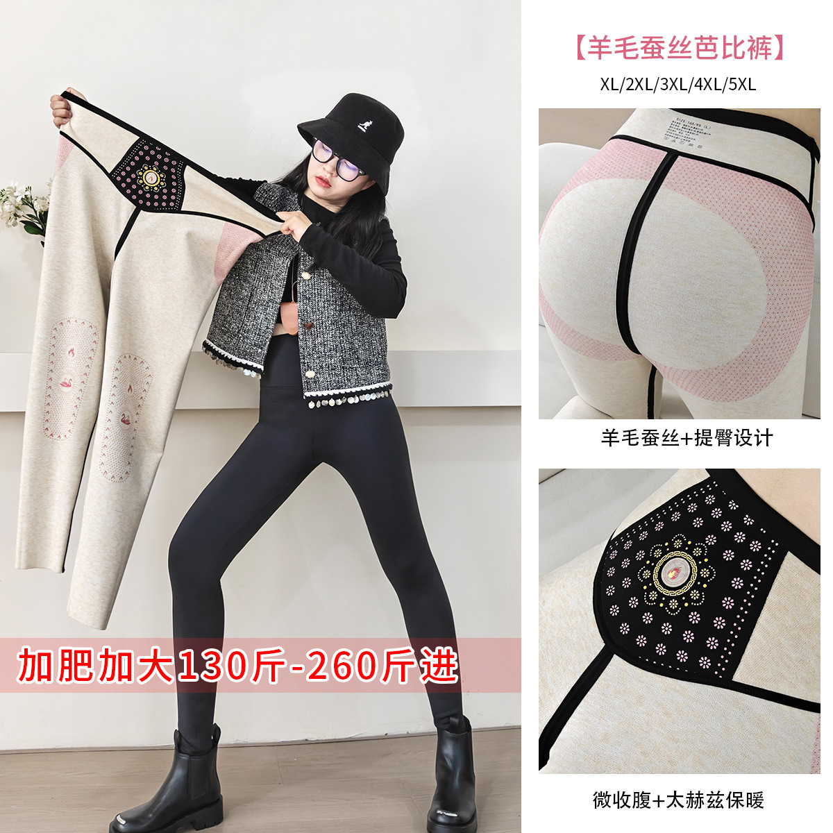 加肥加大羊毛蚕丝芭比裤 护膝保暖秋冬鲨鱼裤 高弹运动瑜伽裤女