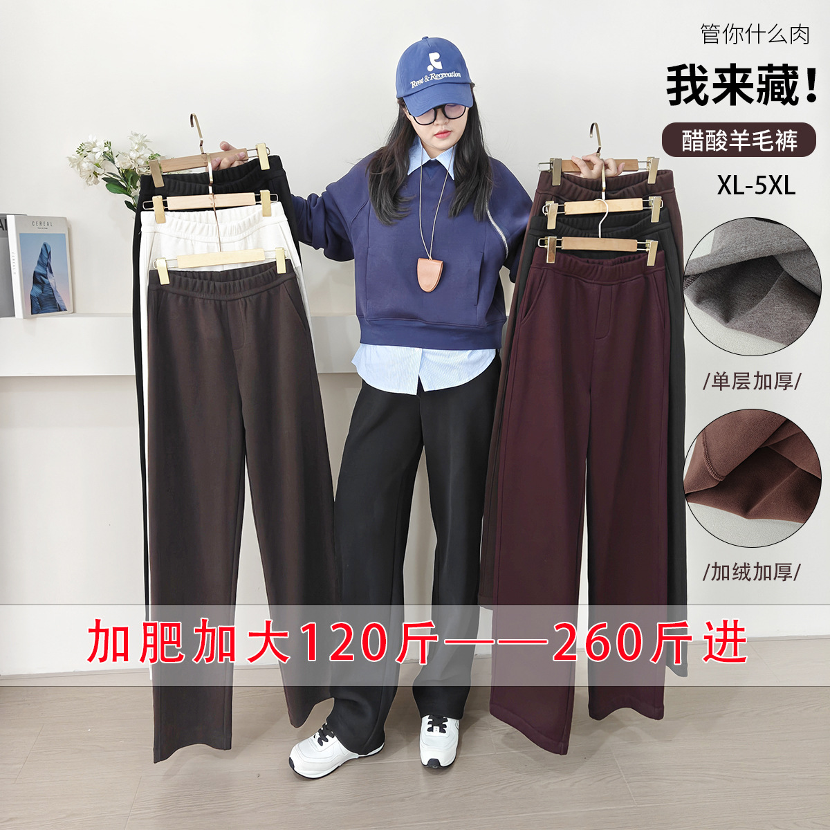 加肥加大醋酸羊毛加绒加厚休闲裤 大码秋冬260斤高奢时尚直筒裤