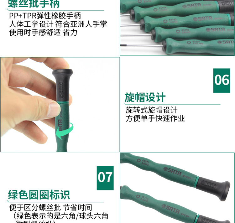 世達工具平頭球頭ミニ六角ネジ精密内六角ドライバー63101/63201