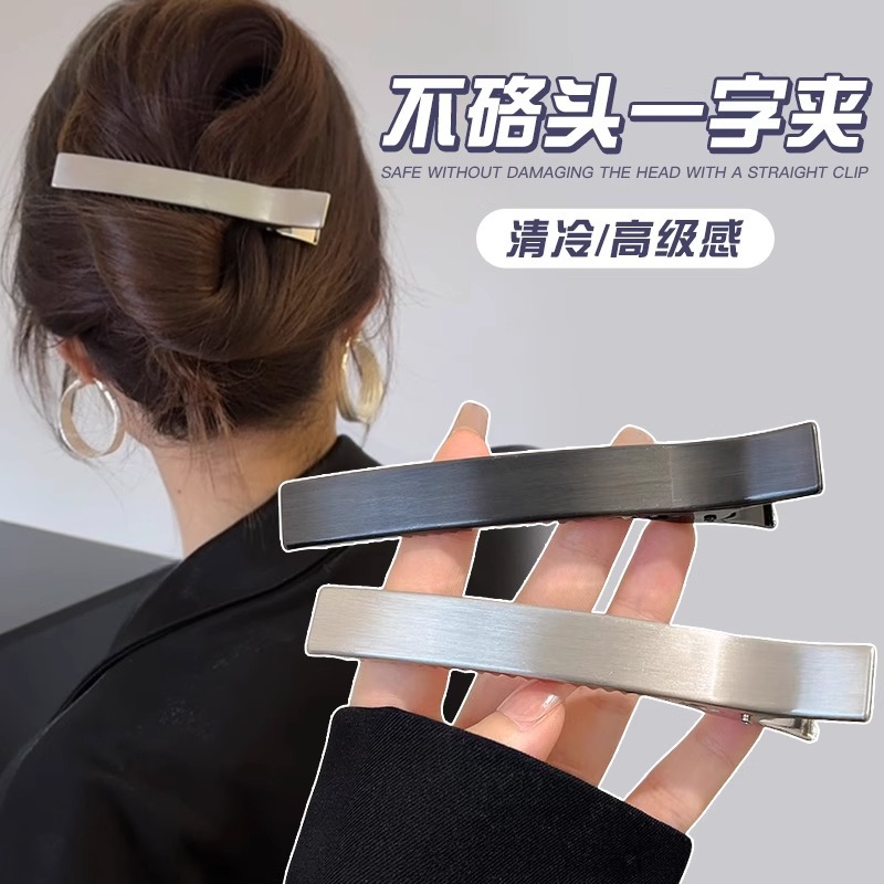 韓国のシンプルなカモノハシクリップ、高級つや消しワンラインクリップ、後頭部ヘアアーティファクト、大型金属ヘアクリップヘッドドレス