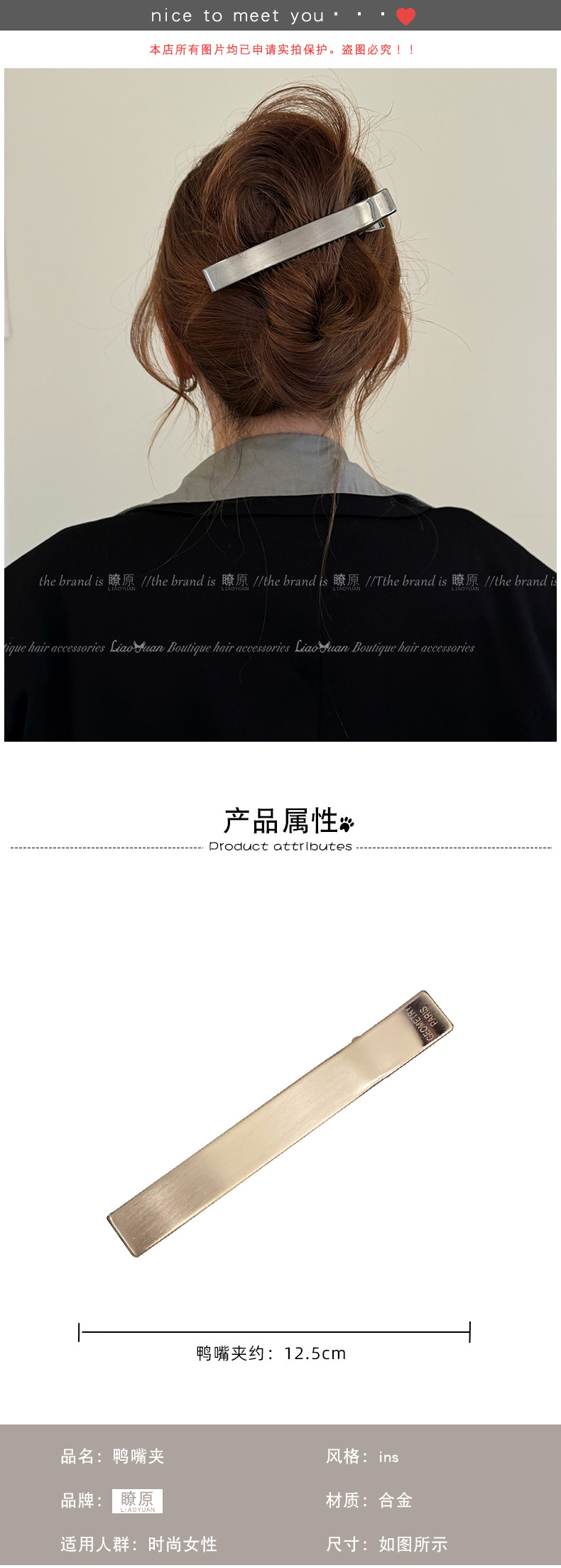 韩系金属发抓女高级感后脑勺盘发一字发夹简约大号鸭嘴夹发卡头饰