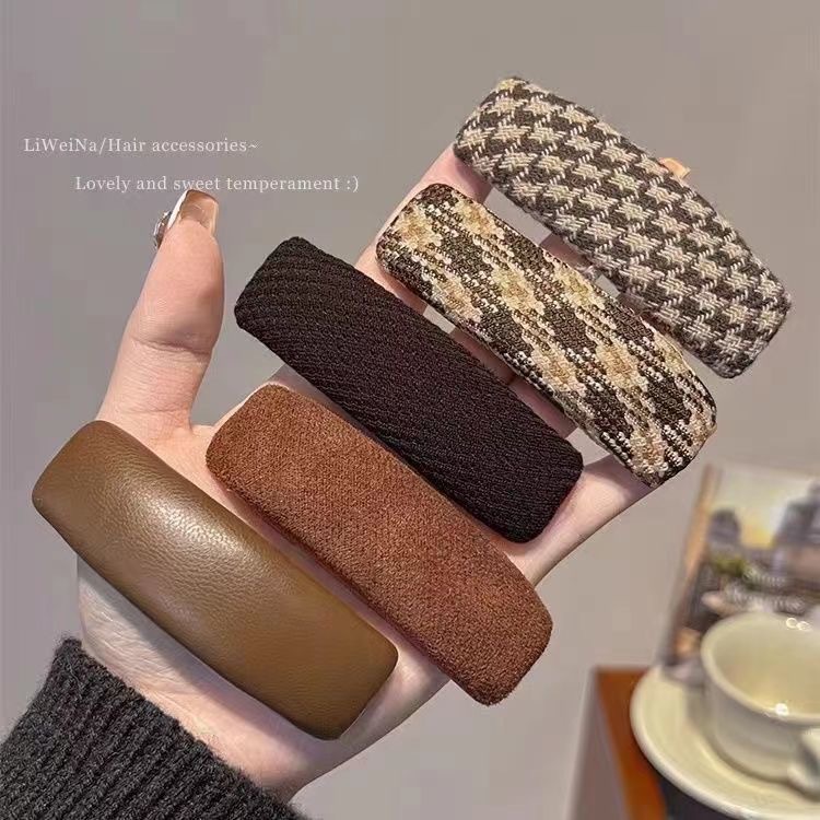 美ラードカレー色千鳥格ヘアクリップ女性サイド前髪クリップレトロ気質ヘアピン後頭部砕髪bbクリップ