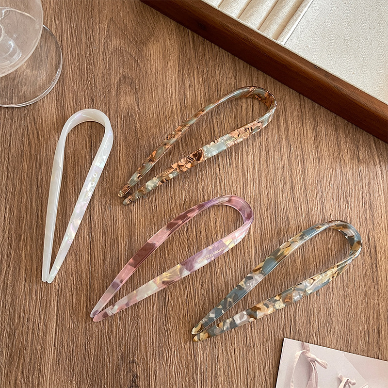 シンプル酢酸u型かんざし女性高級感かわいい丸子頭神器ヘアピンかんざし2024新作頭飾りins