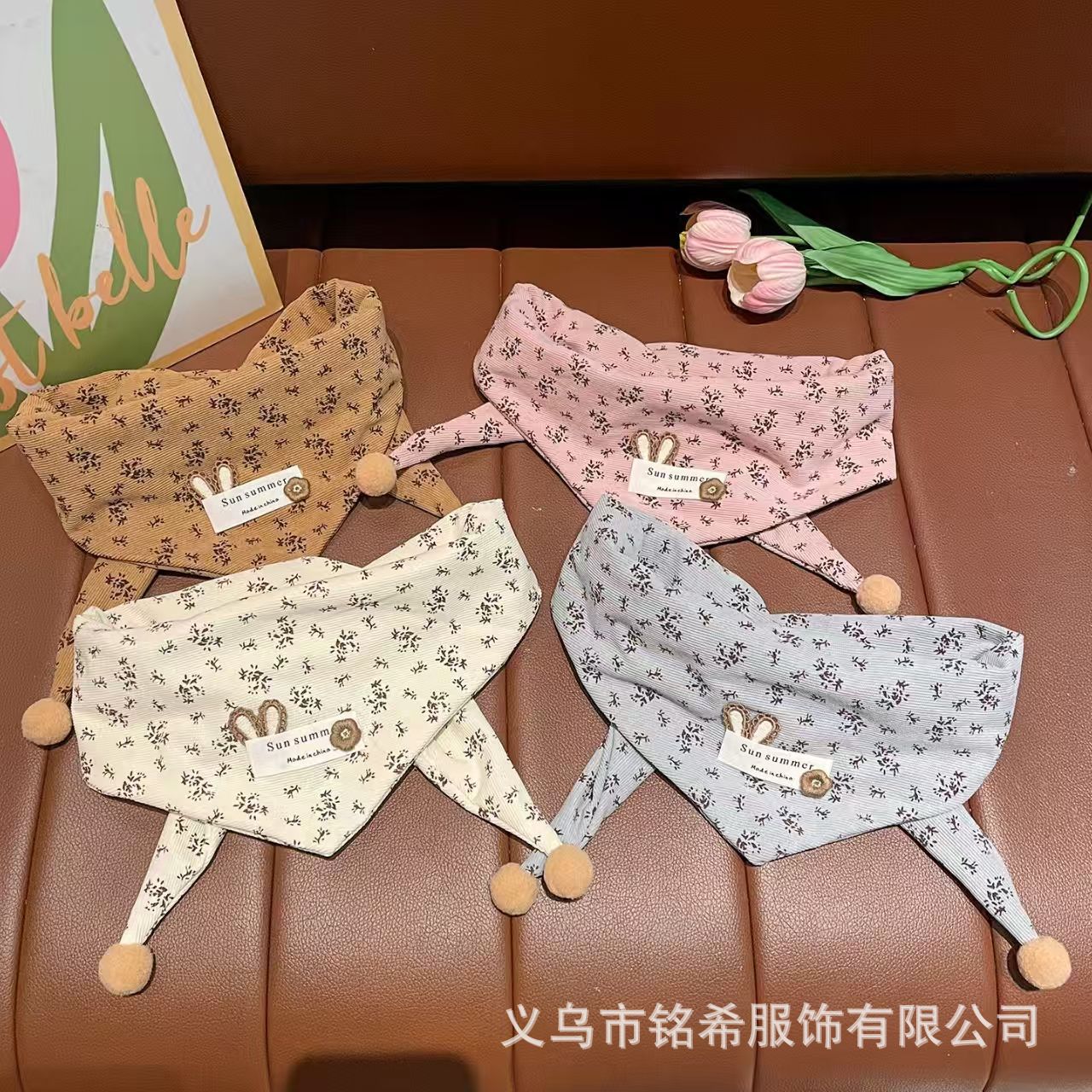 2025秋冬新款儿童三角巾男女宝宝保暖脖套护颈防寒高档碎花围巾