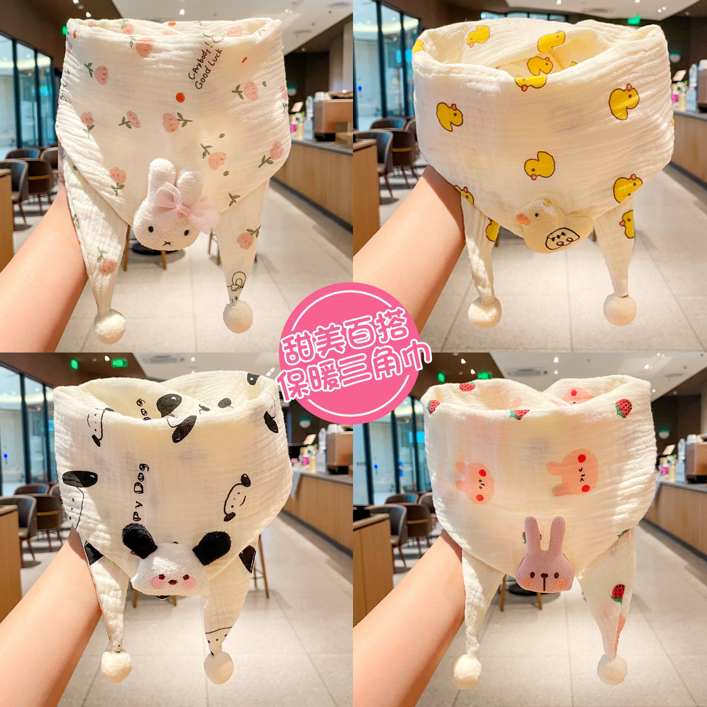 秋冬新款儿童三角巾男女宝宝保暖脖套护颈防寒高档卡通碎花围巾