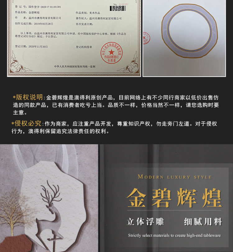 高級軽豪華レトロ現代儀式感洋食冷菜insホテル用品家庭用陶磁器展示皿皿