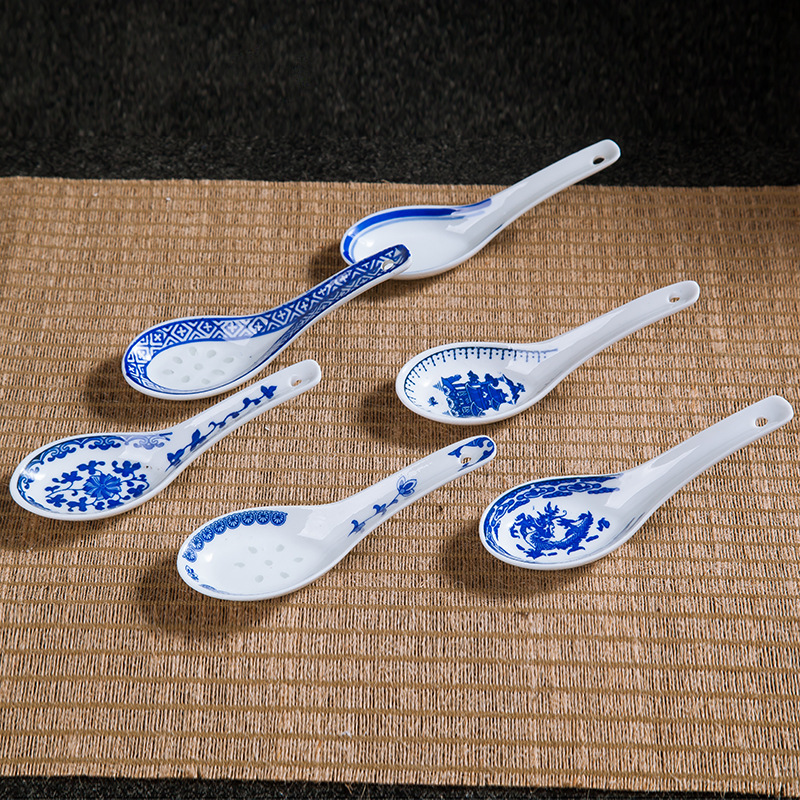 景徳鎮の青花の小さいスプーンの小さいスープの陶磁器のスープの丸いスプーンのデザートのスプーンの釉薬の下で色の家庭用スプーンの食器の予備品を塗ります。