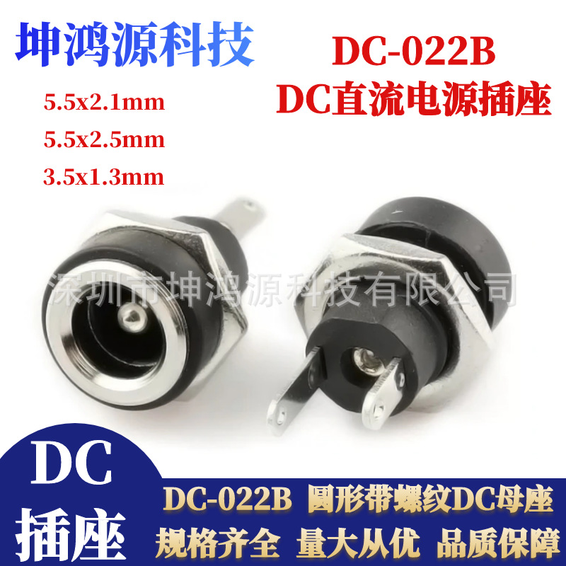 DC電源ソケットDC-022B円形ねじ付きソケット5.5*2.1/2.5母座3.5*1.3穴8MM