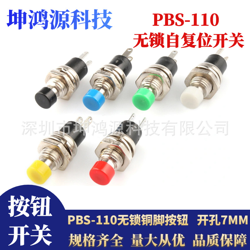 PBS-110小型押しボタンスイッチロック無しセルフリセット7MM 2足点動ボタン押し通スイッチpb 05a