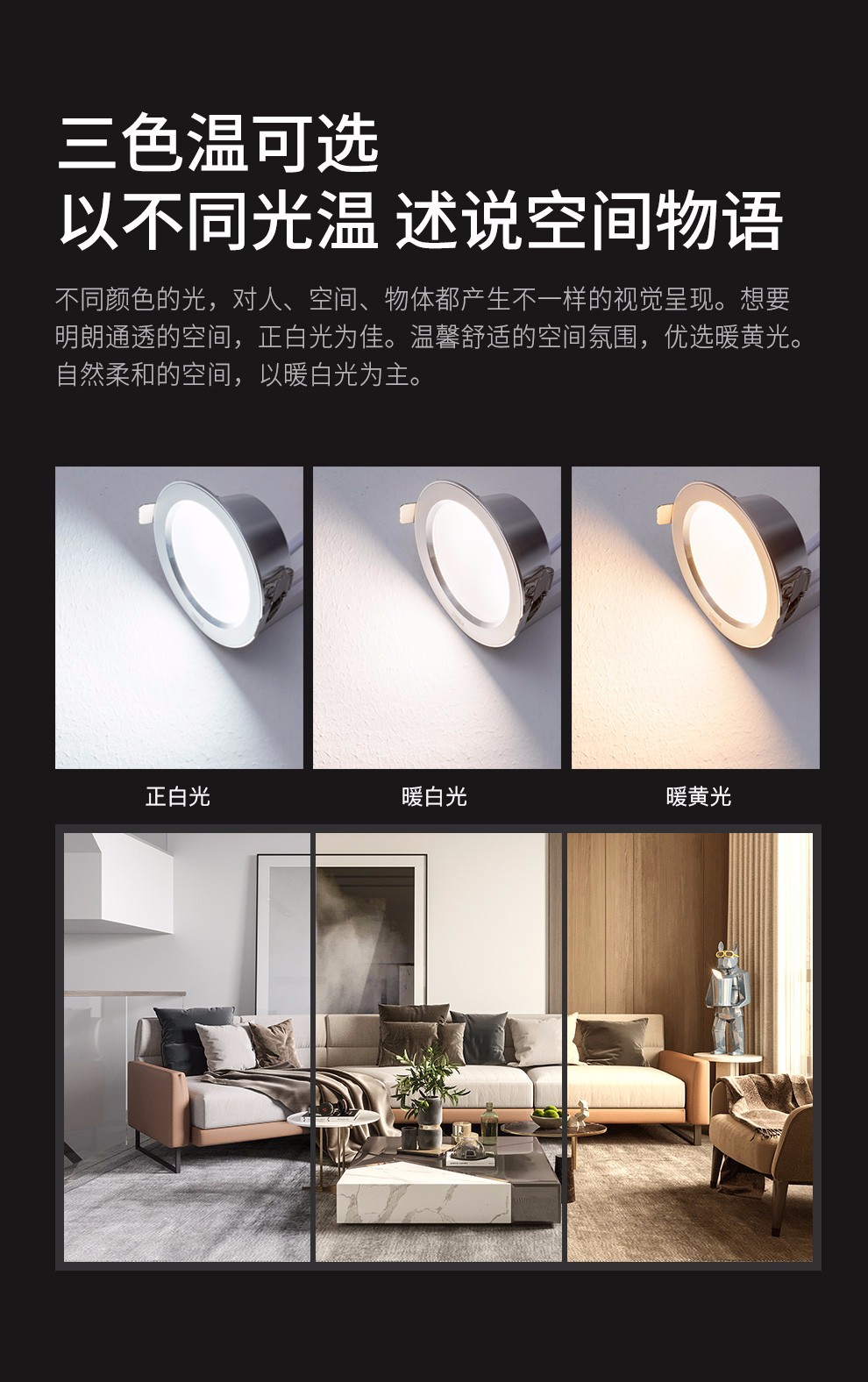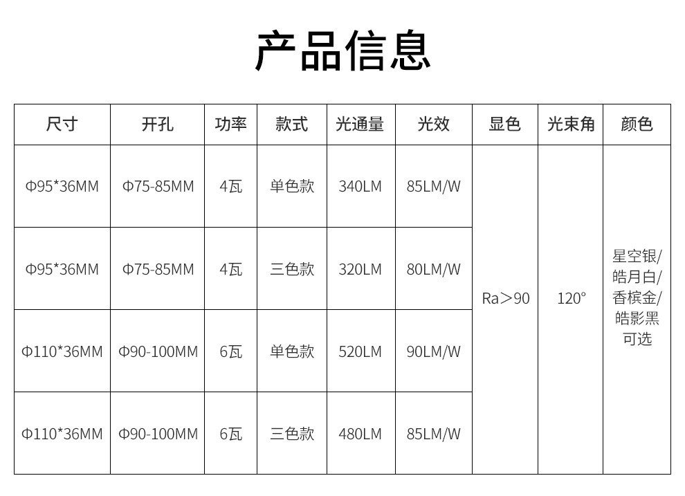 光の色 4W ペイントホワイトウォームホワイトライト - 開口部 75mm,4W ペイントホワイトポジティブホワイトライト - 開口部 75mm,4W塗装白3色ライト 開口部75mm,4W サンドシルバー 3色ライト 開口部75mm