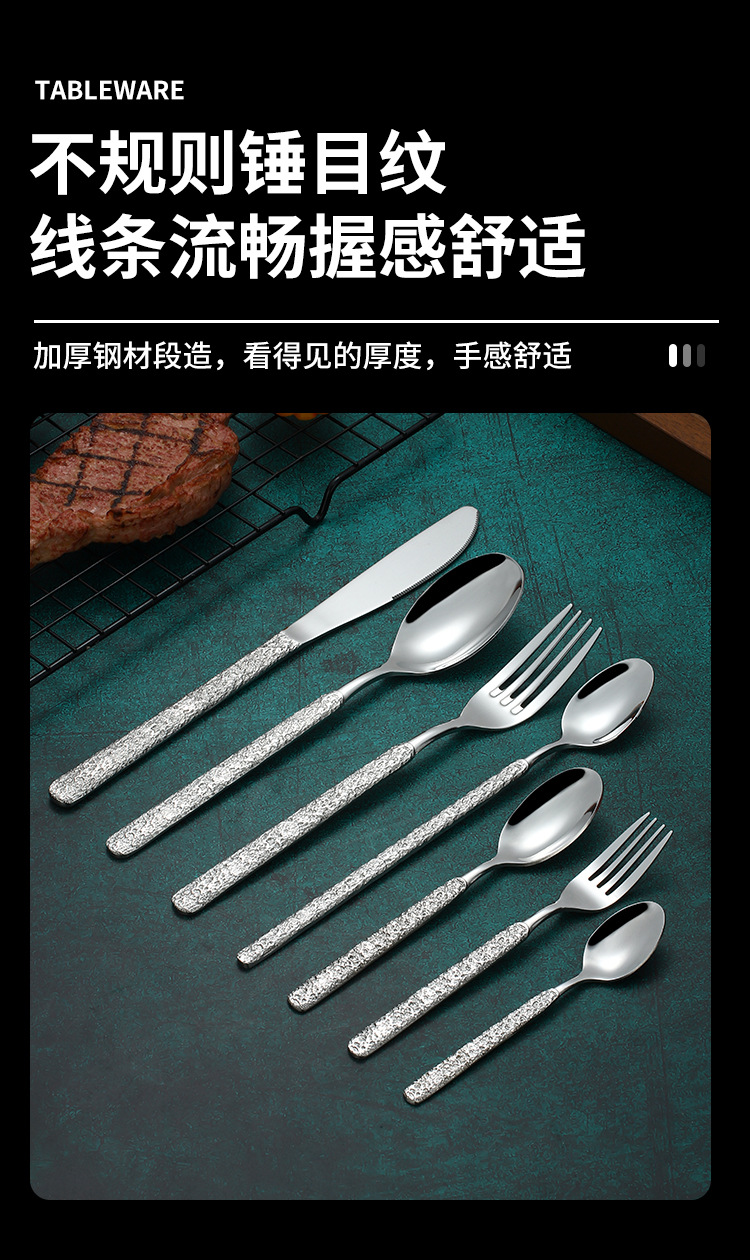 国境を越えたステンレスナイフフォークスプーン西食器創意角柄ハンマー柄ホテル家庭用ステーキナイフデザートスプーンセット