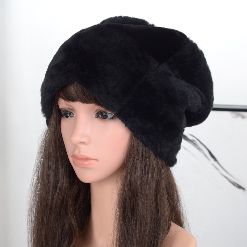 ファッション真兎毛編み帽子男女秋冬毛皮の首カバー
