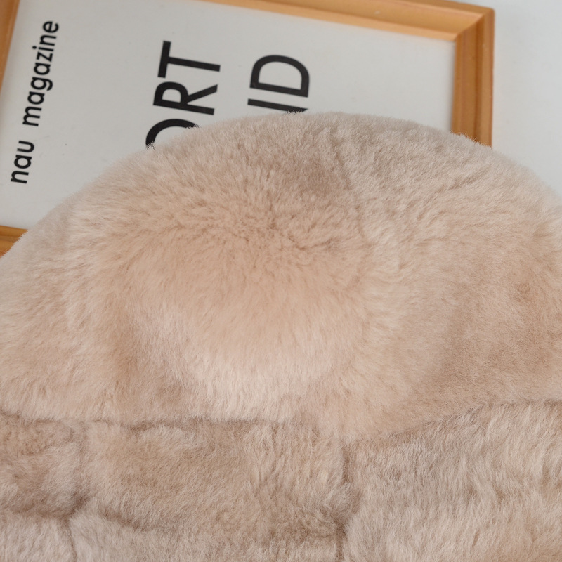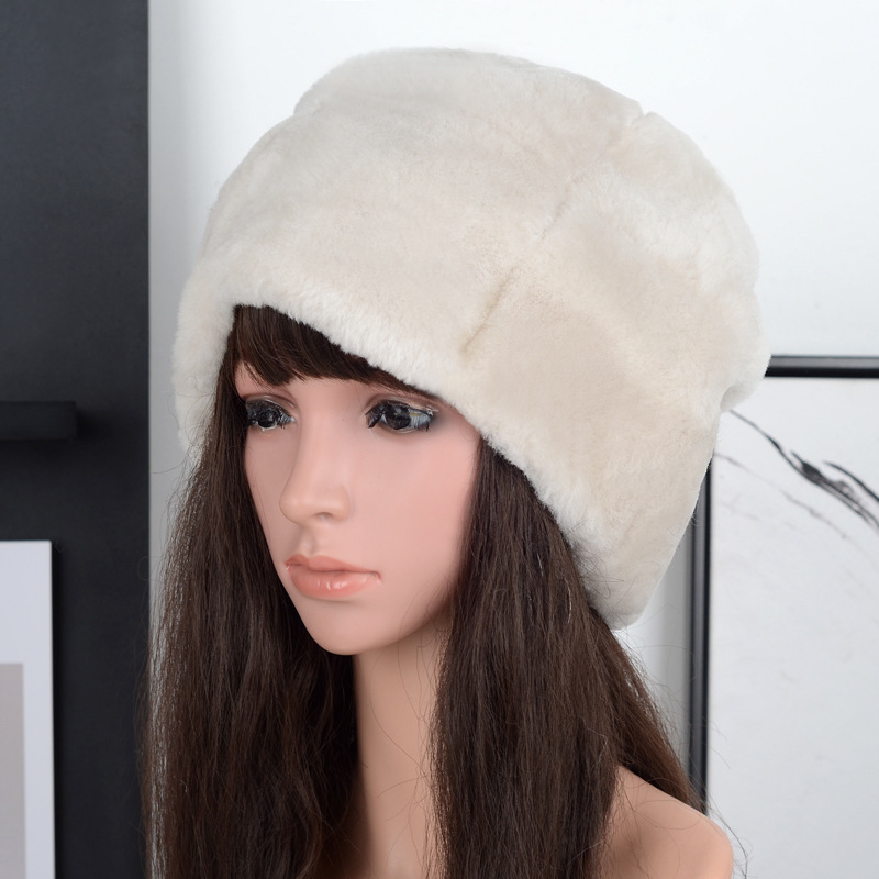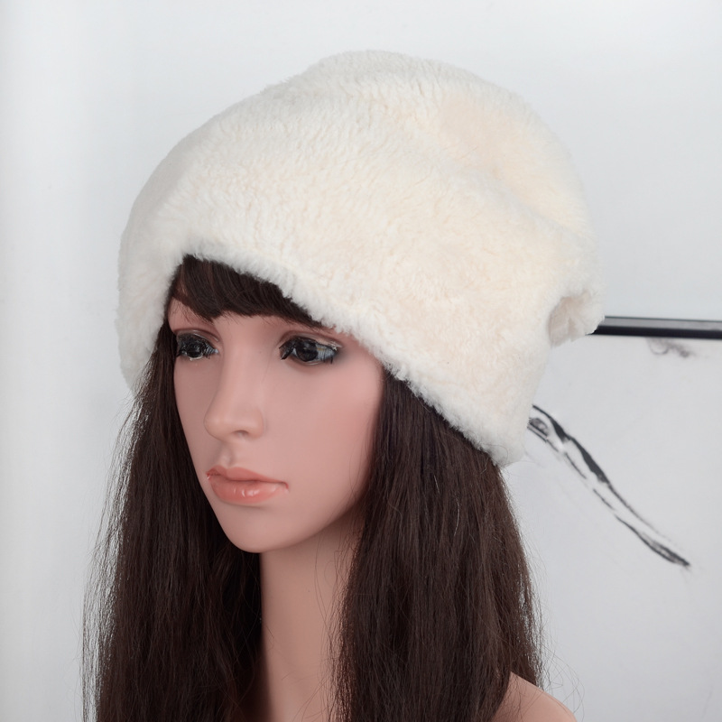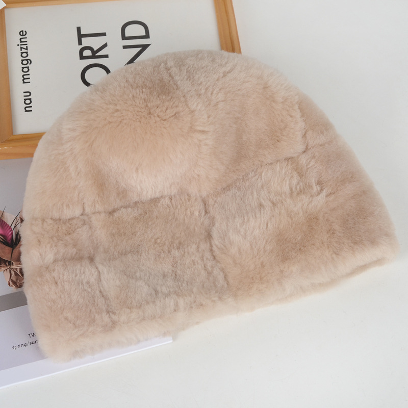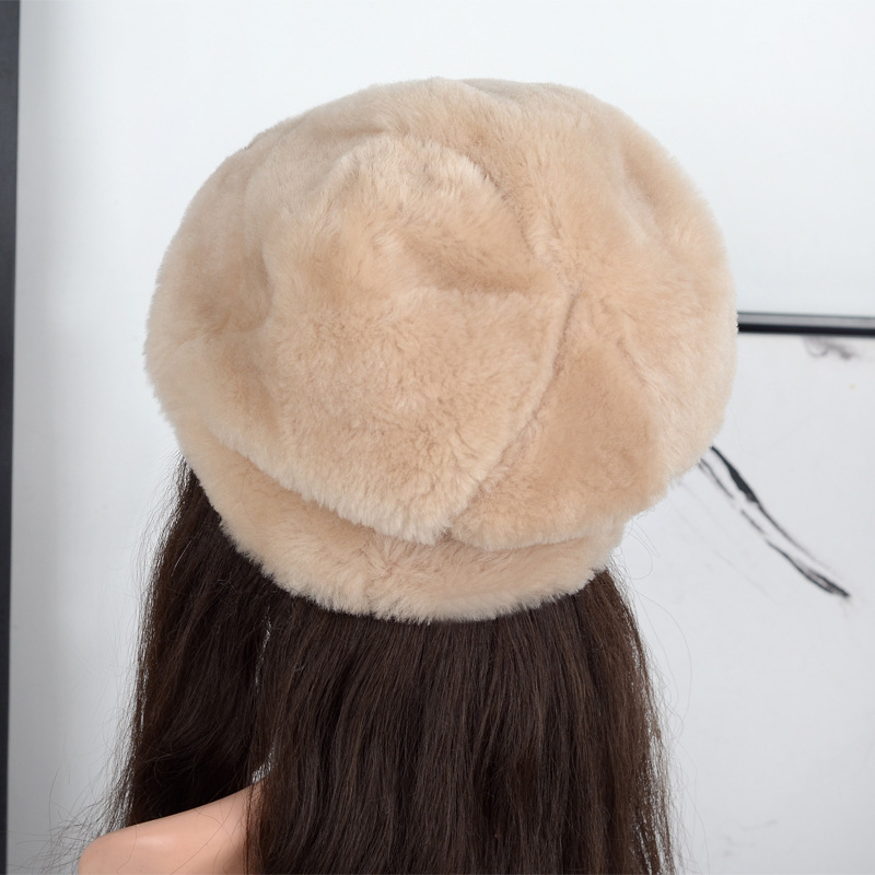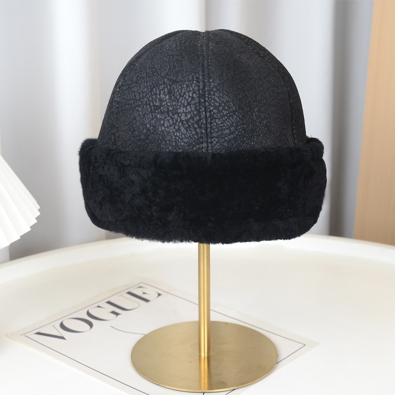 跨境外贸质量羊皮毛一体帽子女士秋冬保暖防寒挡风羊皮羊毛帽子