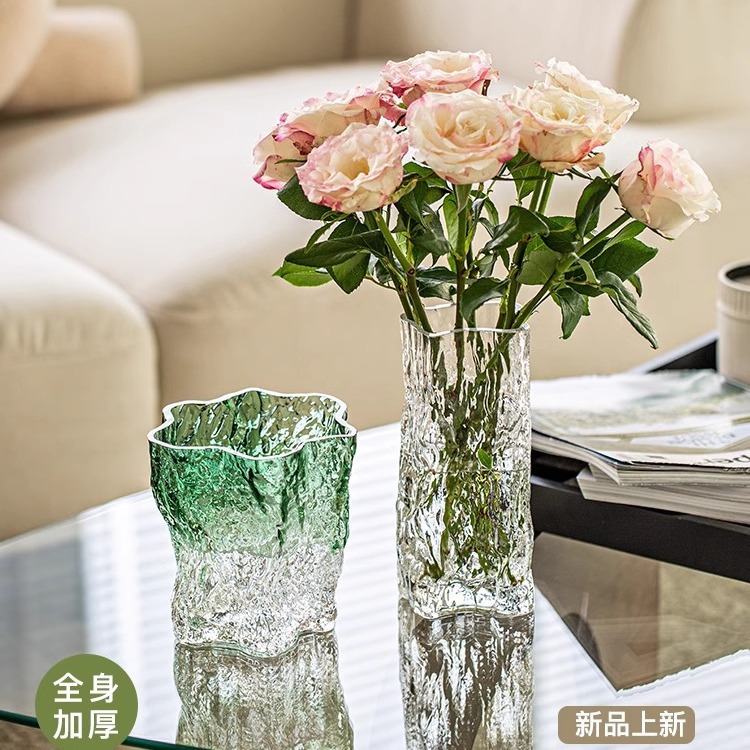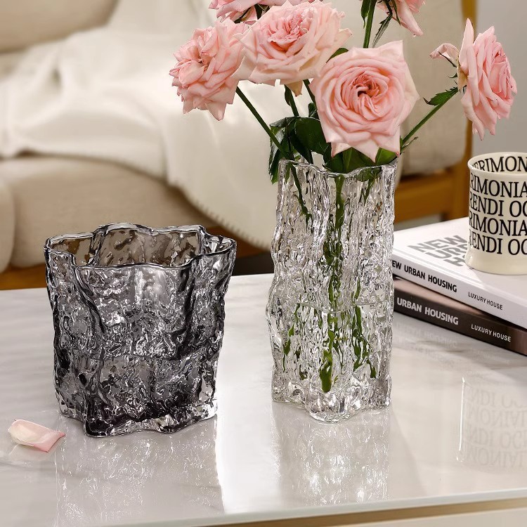 不規則な水波紋氷河ガラス花瓶食卓水培透明ガラス生け花飾り高級感花