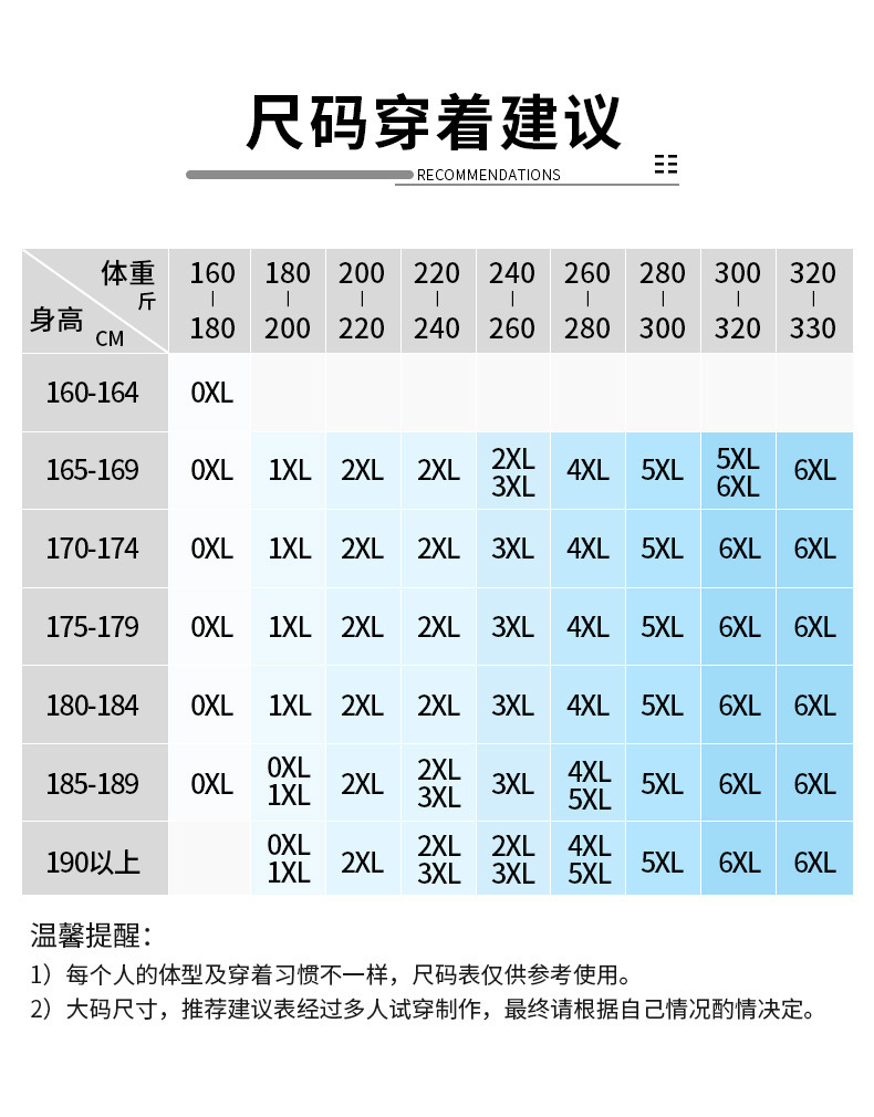 0XL( 80kg-100kg ),1XL( 100kg-110kg ),2XL( 110kg-122.5kg ),3XL( 122.5kg-135kg ),4XL( 135kg-145kg ),5XL( 145kg-160kg ),6XL( 160kg-180kg )