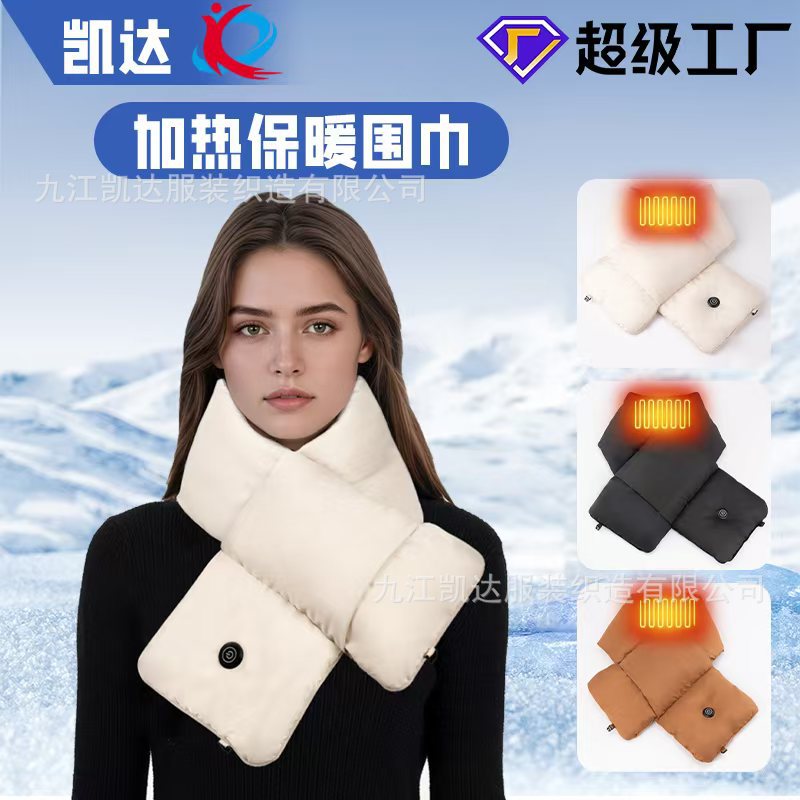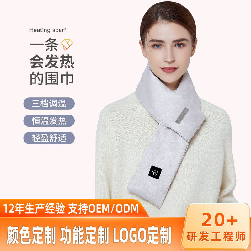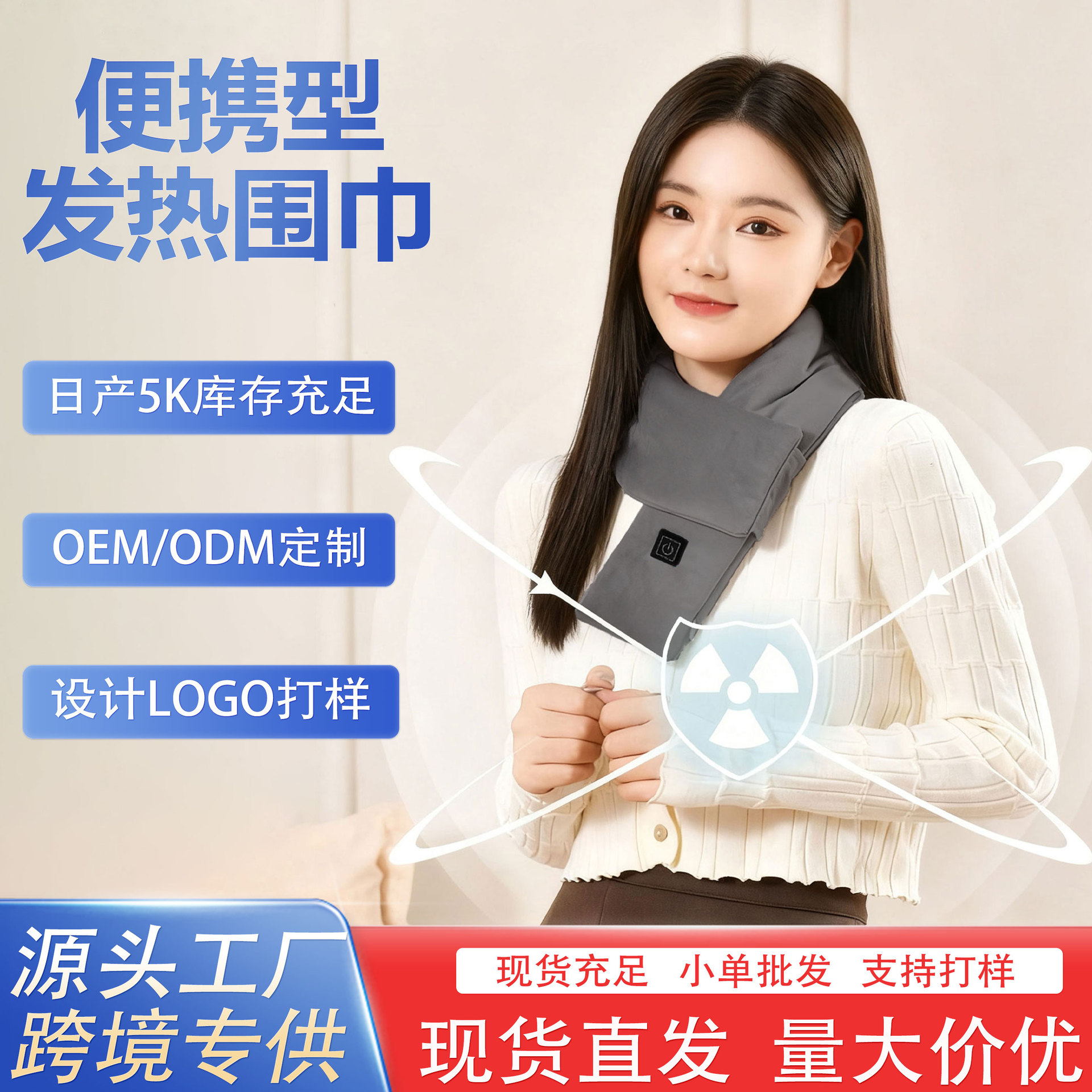 2025跨境新款电热围巾秋冬 USB加热智能充电发热围巾百搭护颈围
