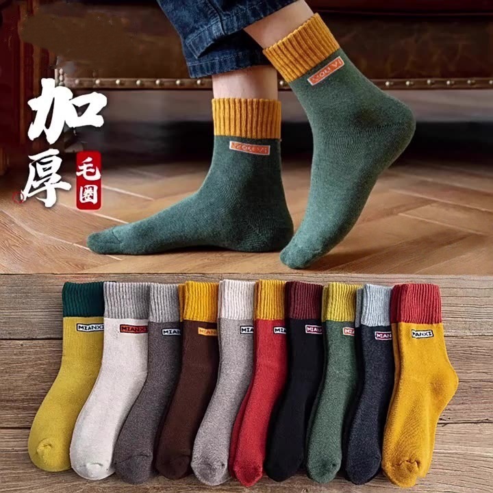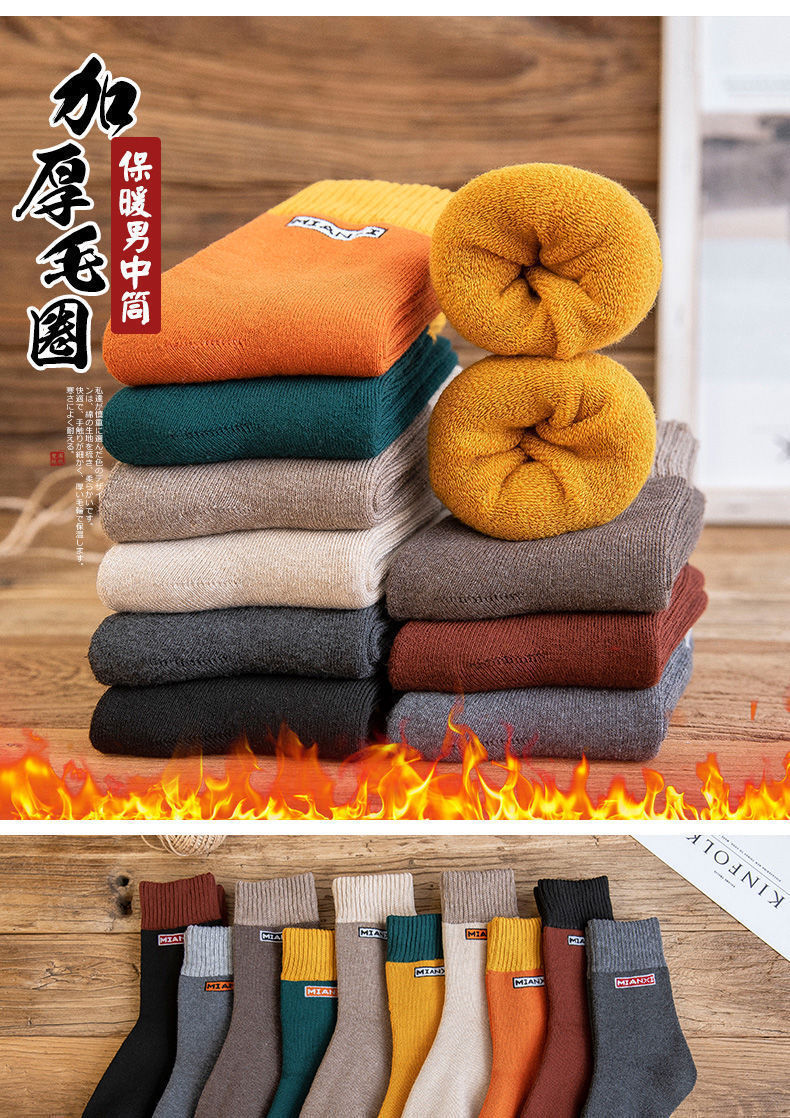 冬の靴下の男性にベルベットの厚い中筒靴下保温毛輪靴下秋冬ストッキング超厚ストッキング