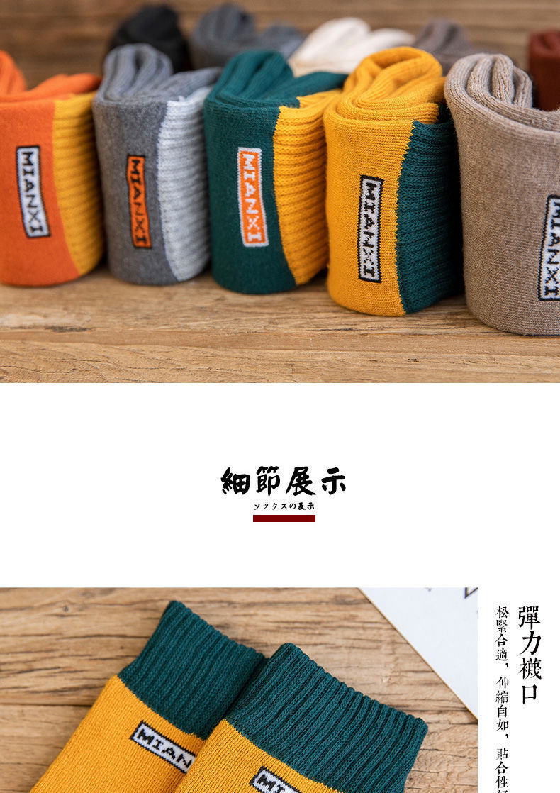 糖果色秋冬季保暖中长筒男女款月子袜加厚加绒吸汗防臭拼色毛圈袜