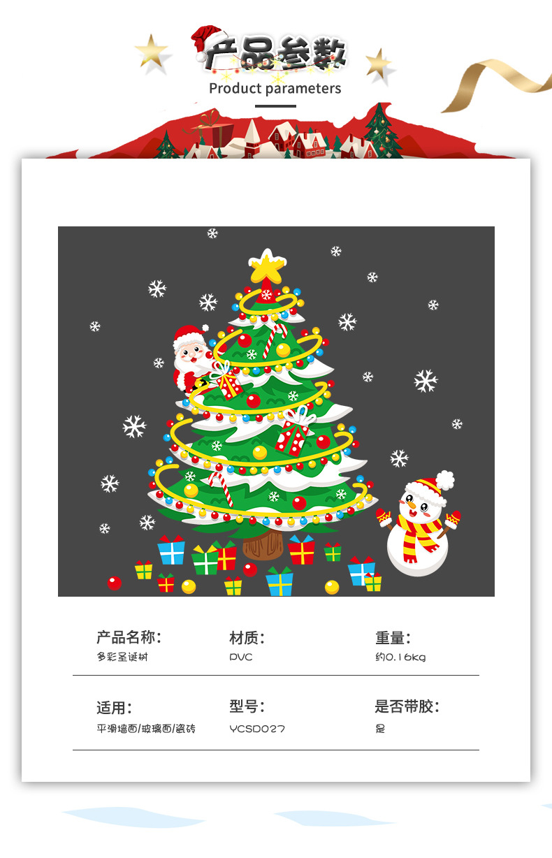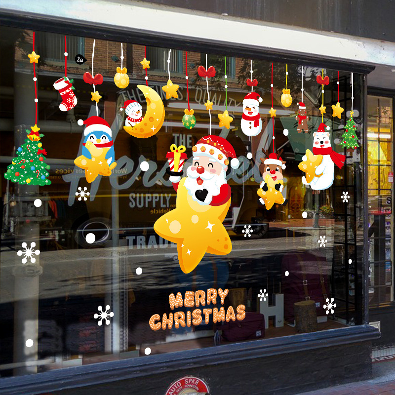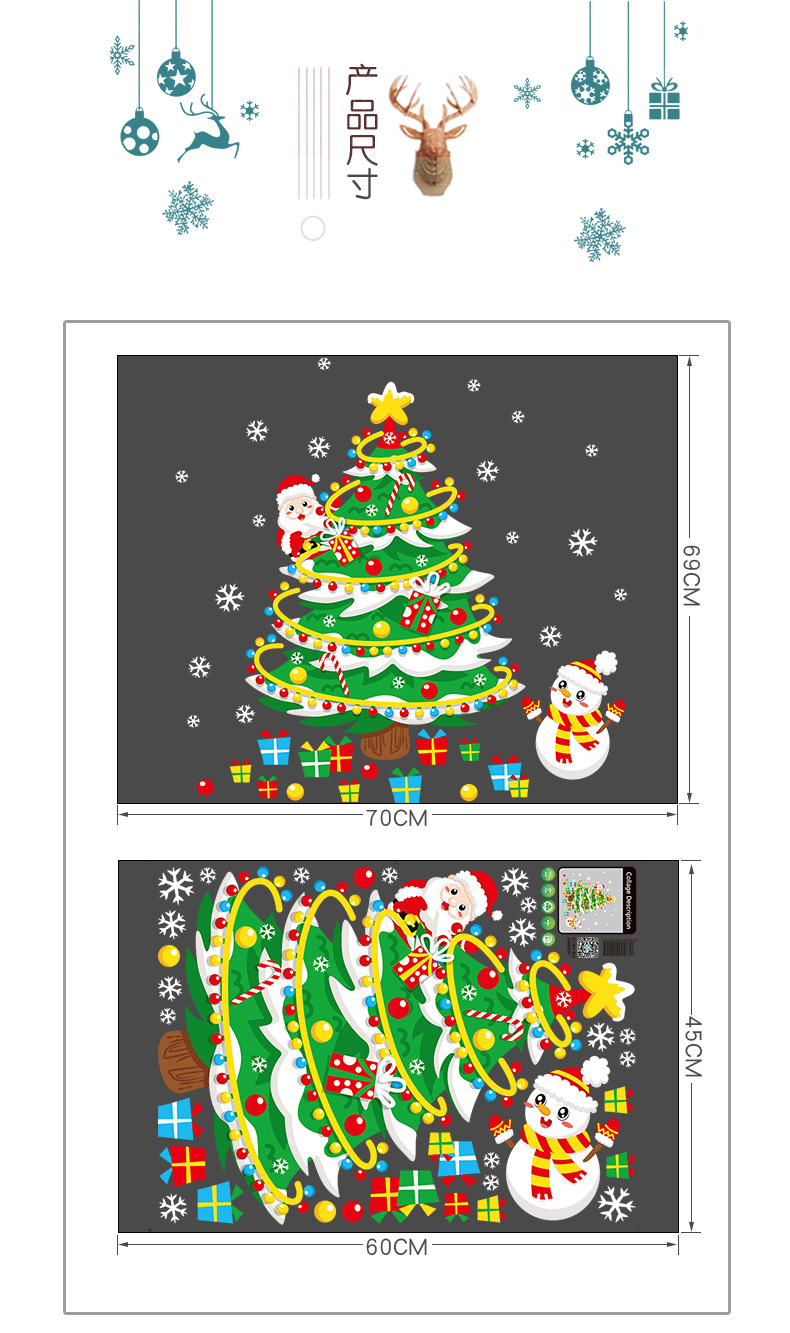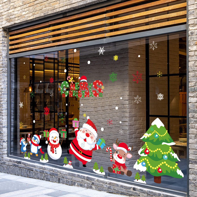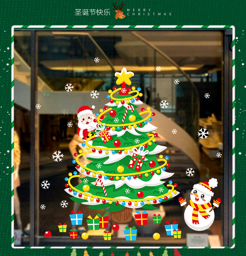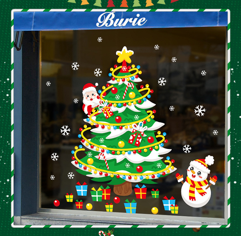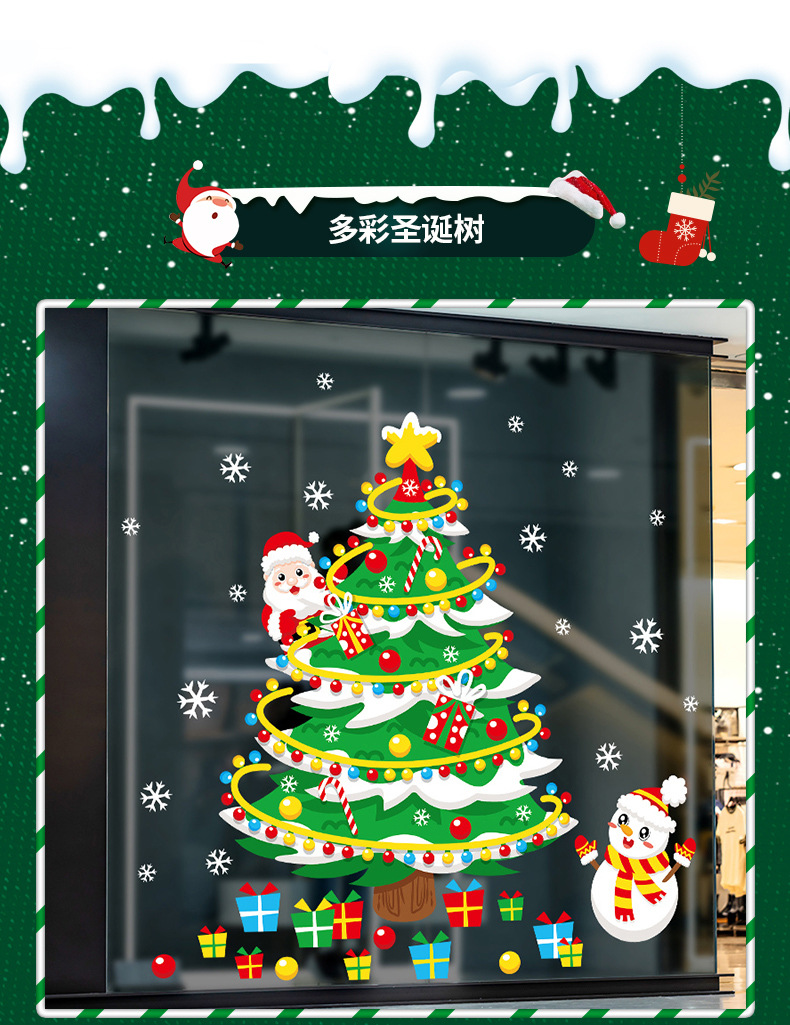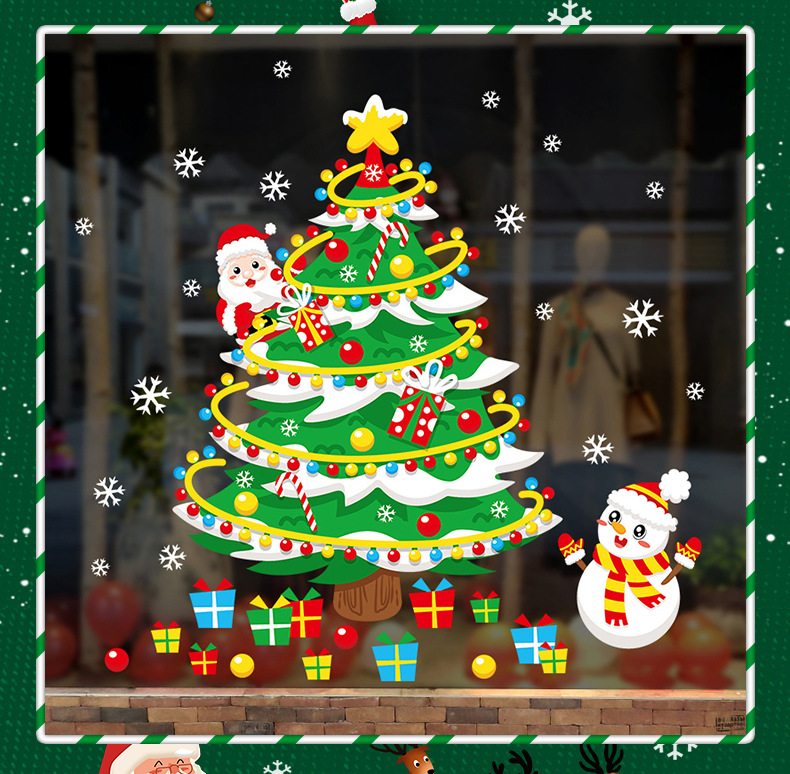 2025クリスマス装飾品店舗ショーウインドーガラスシールドア貼りシーン配置サンタクロースの木の壁貼り絵