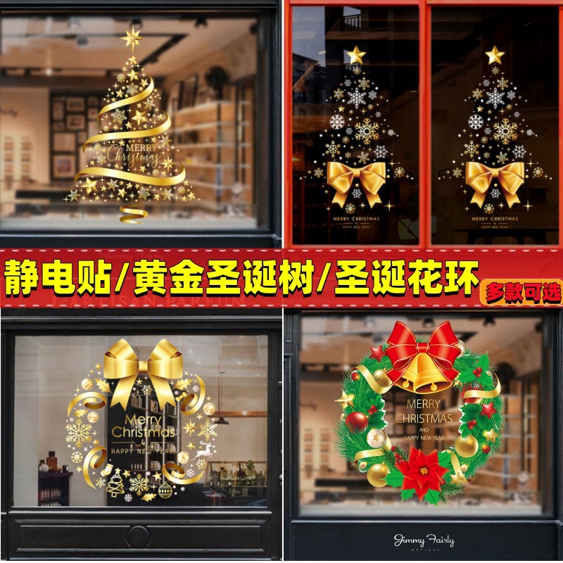 クリスマス装飾品金色クリスマスプレゼント花輪飾りガラス扉貼りクリスマスツリー店舗ショーウインドー花静電気
