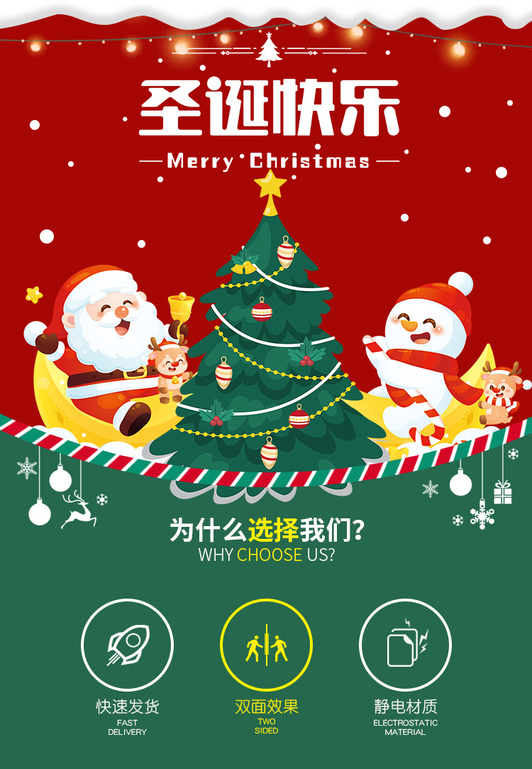 2026圣诞节静电贴纸装饰商场场景氛围布置墙贴橱窗玻璃门窗花贴画