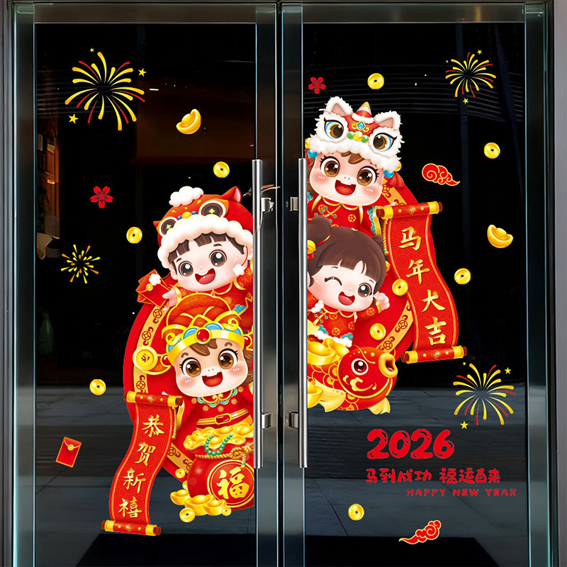 2026马年新年玻璃贴纸静电贴春节过年装饰贴画窗贴福字门贴窗花贴