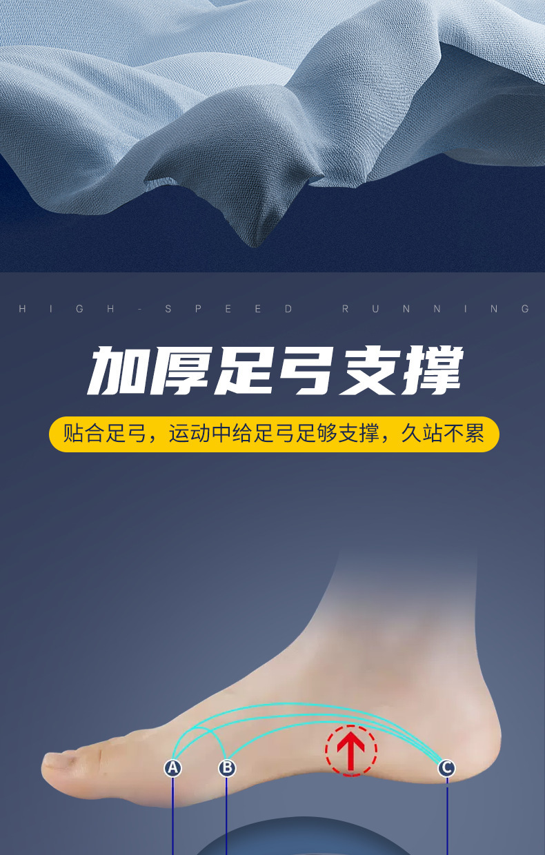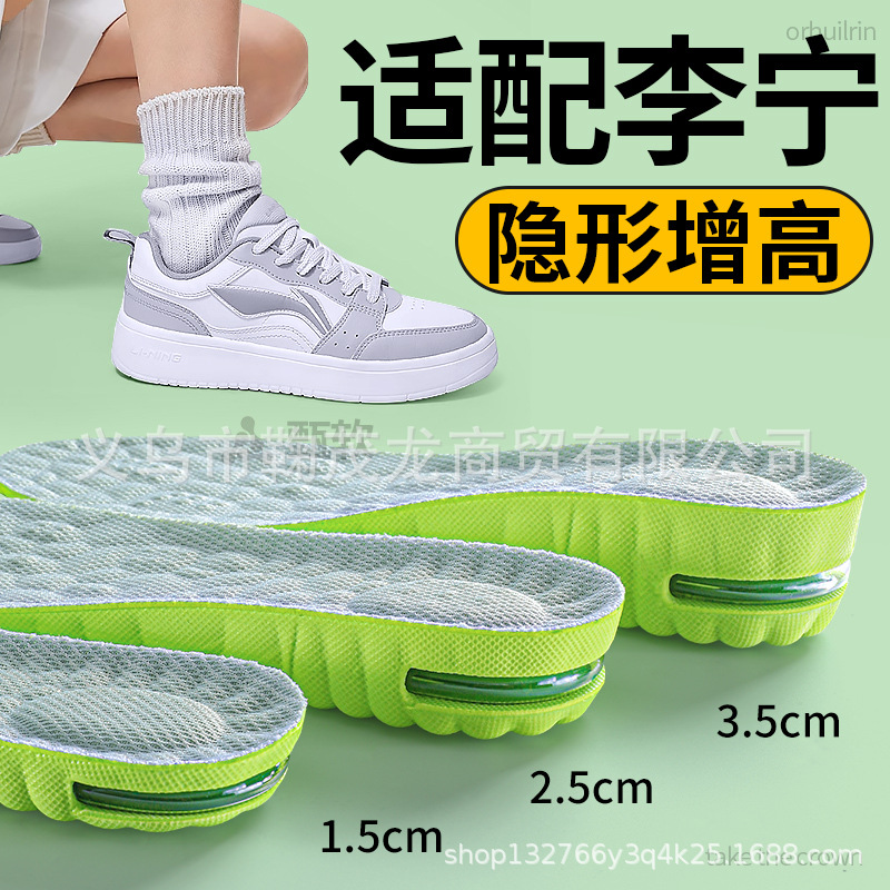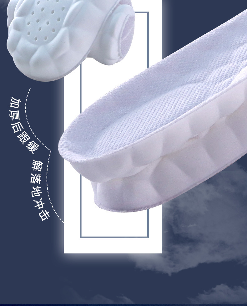 气垫减震舒适隐形内增高鞋垫软弹足弓支撑久踩不塌陷全掌踩屎感