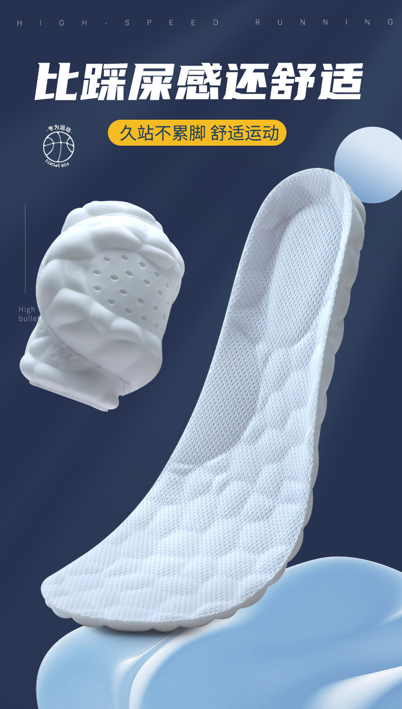 pu云朵踩屎感按摩足弓鞋垫男女高弹减震军训防臭吸汗运动鞋垫批发