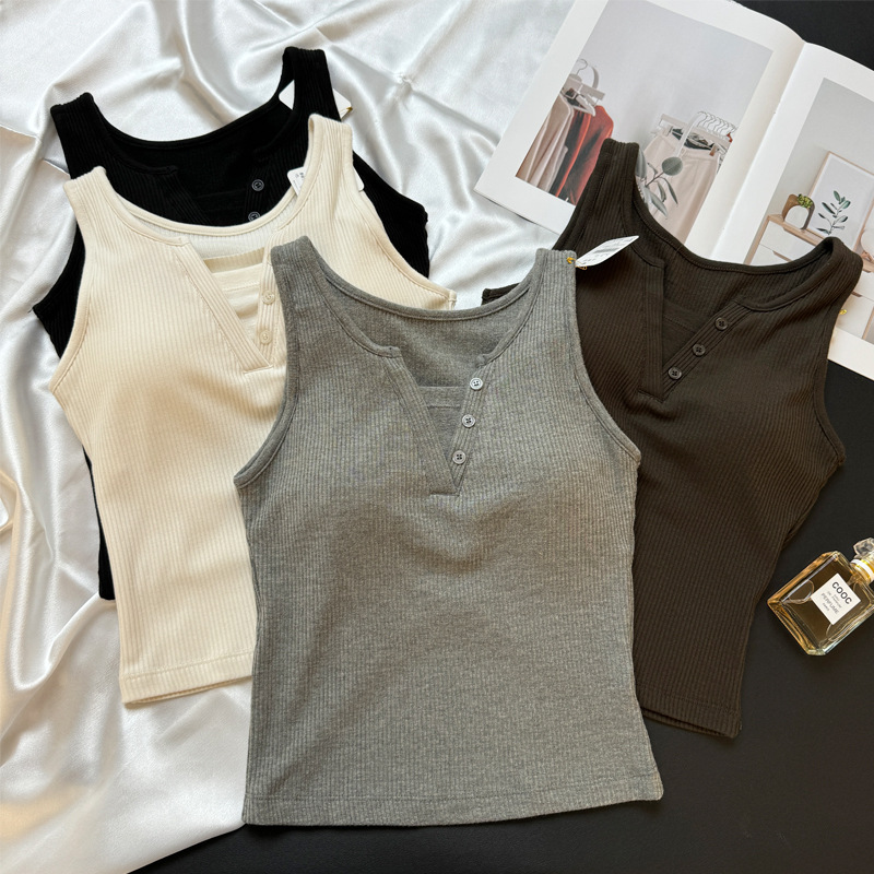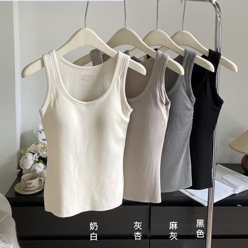 早秋のモデル綿のストラップのベストのラテックスパッドは肌に優しい通気性を集めて底を打ってやせている美背の下着の女性を現します。