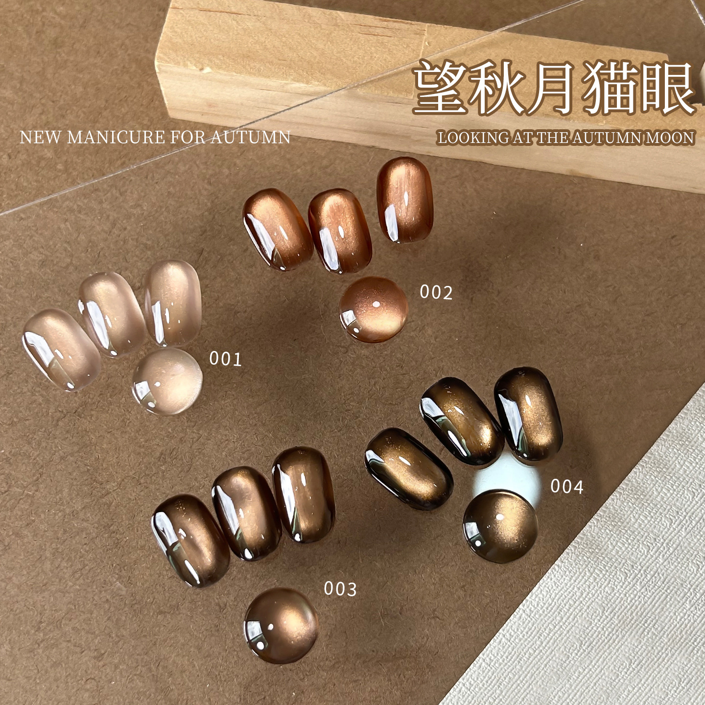 望秋月棕色金光猫眼指甲油胶2026年新款显白焦糖美拉德玻璃珠美甲