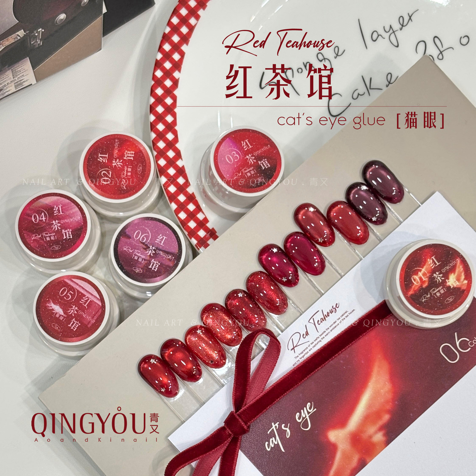 青又新品红茶馆红色猫眼10色秋冬爆款显白酒红玻璃珠罐装美甲油胶