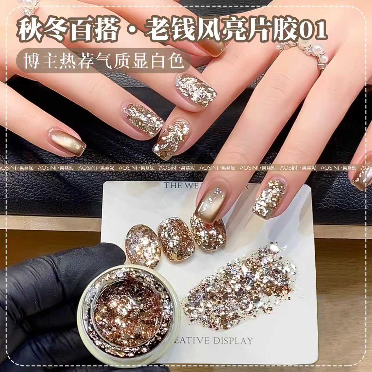 爆闪老钱风金色亮片胶甲油胶2025年新款美甲流行色美拉德秋季显白