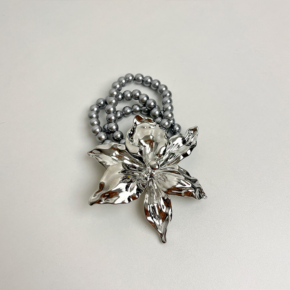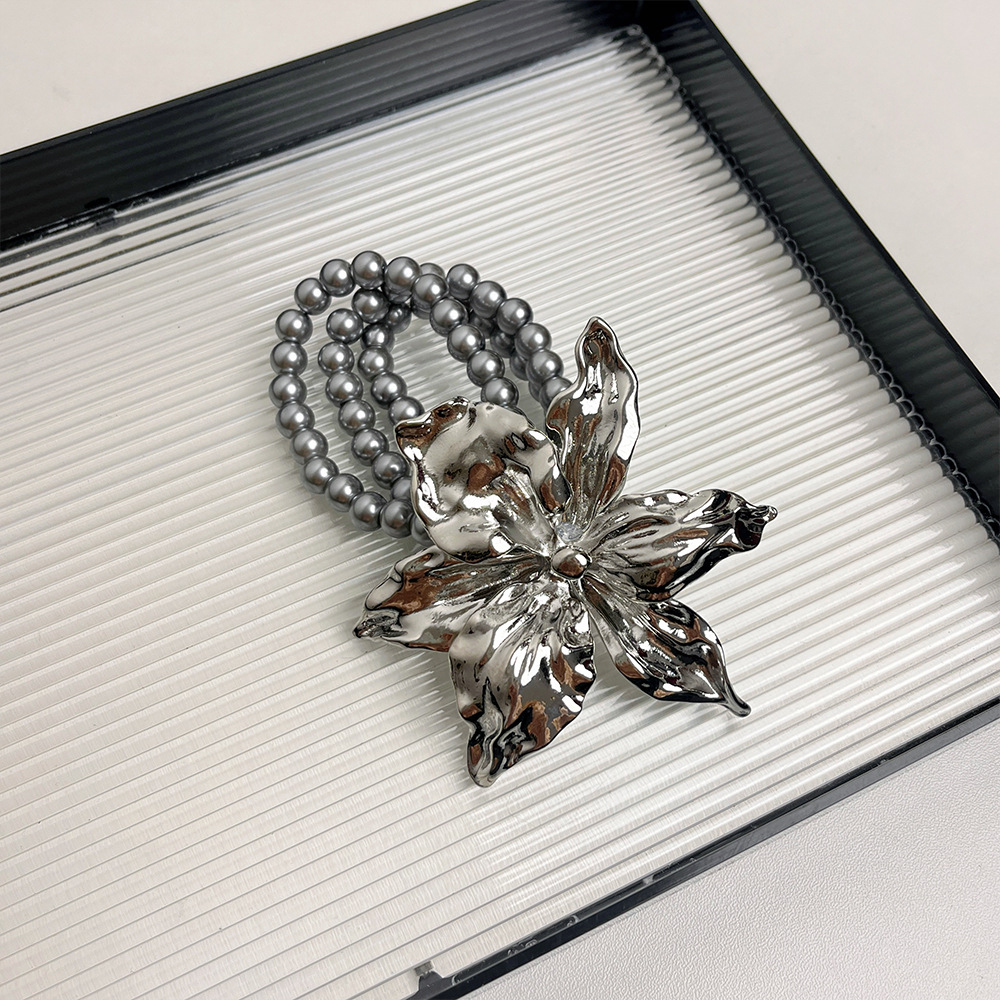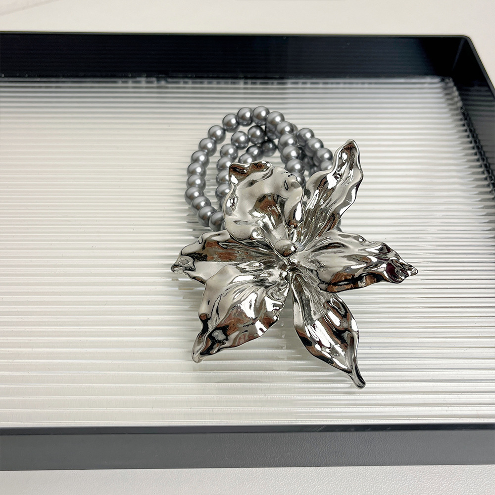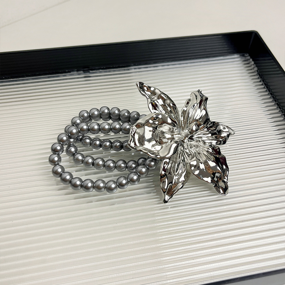 欧米の冷たい風の金属のアイリスの花のブレスレットの女性の復古の個性の多層の弾力の縄の真珠のブレスレットの小さい衆の手の串